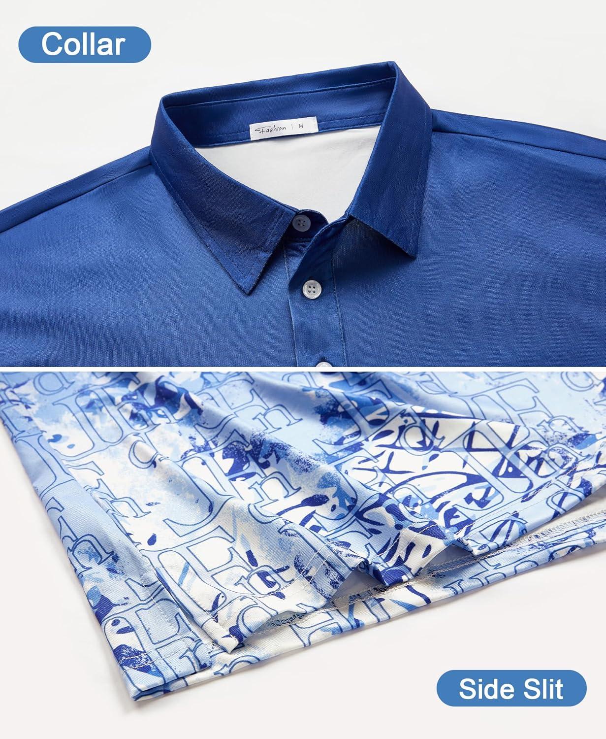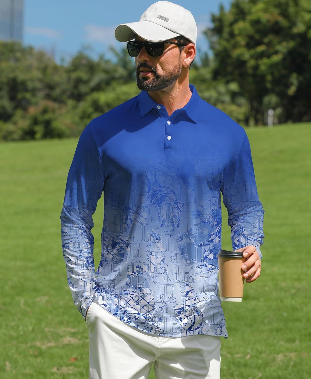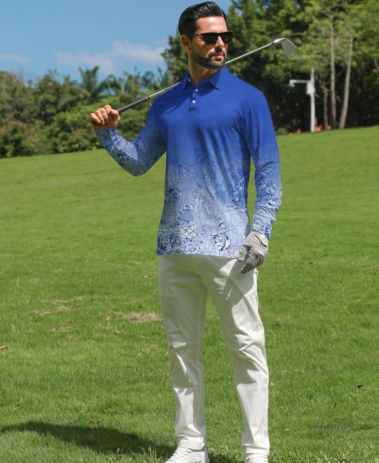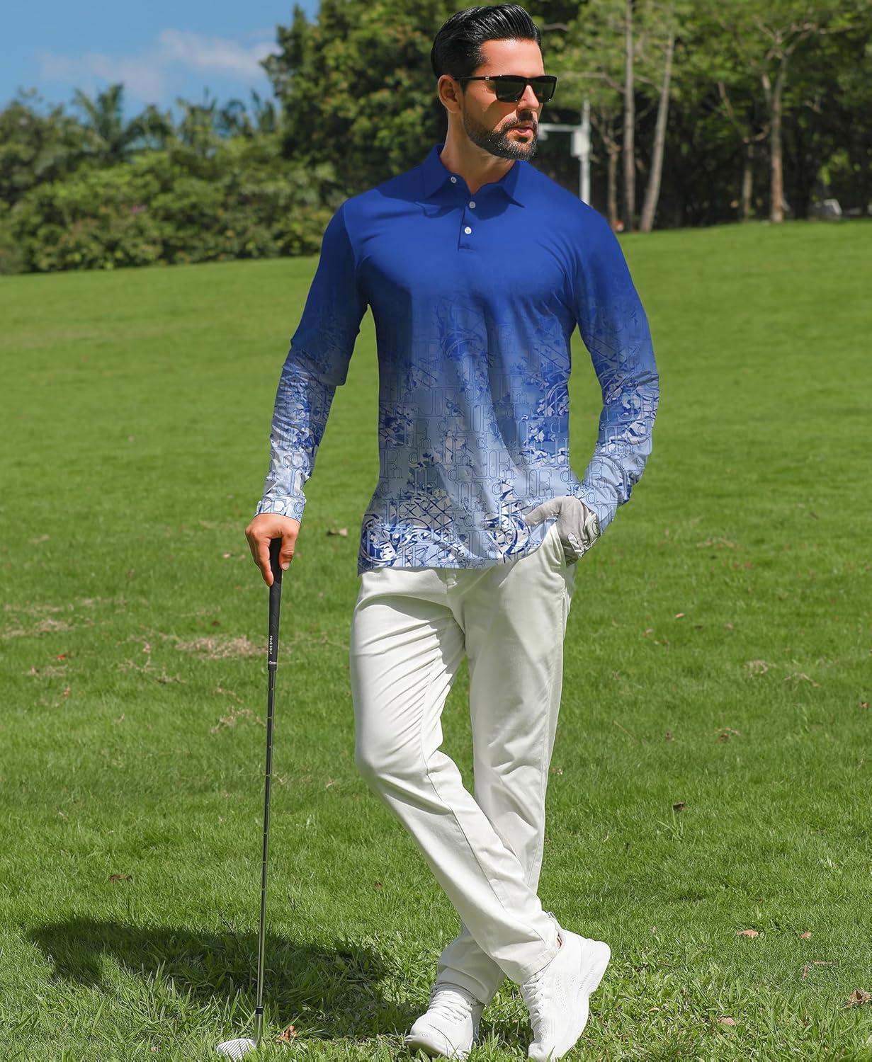 ELETOP Mens Golf Shirts Long Sleeve Print Performance Polo Shirts Moisture Wicking Dry Fit Golf Polo for Men(147 Gradient Grey)