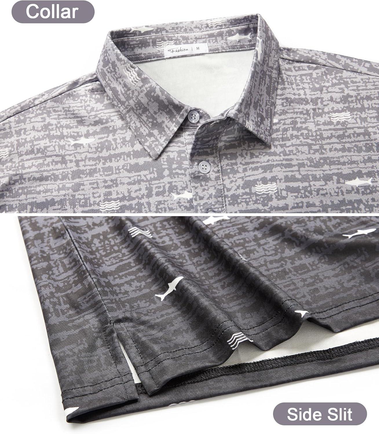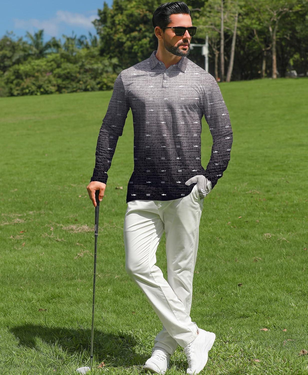 ELETOP Mens Golf Shirts Long Sleeve Print Performance Polo Shirts Moisture Wicking Dry Fit Golf Polo for Men(149 Fish)