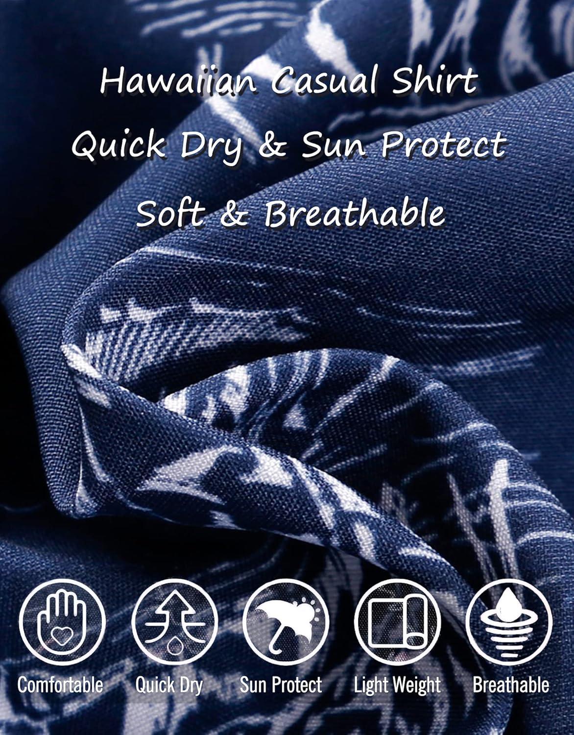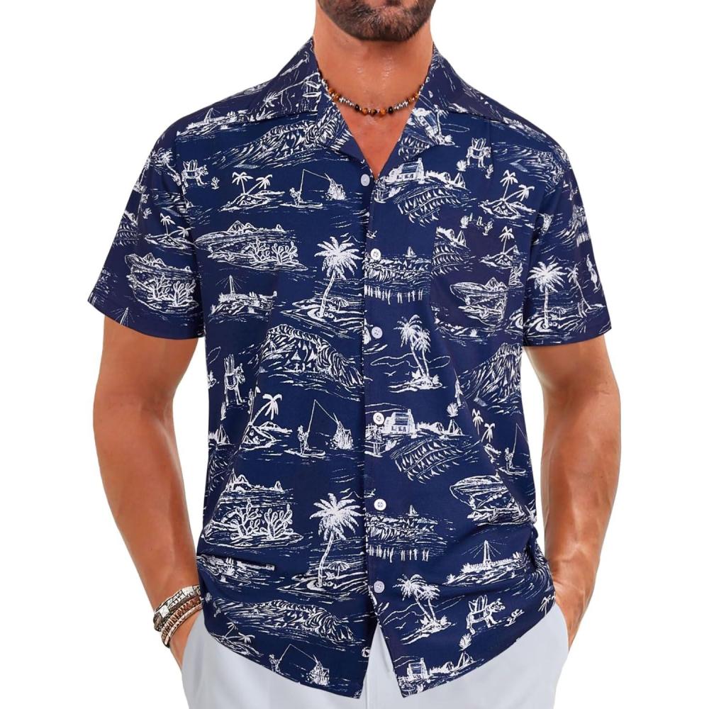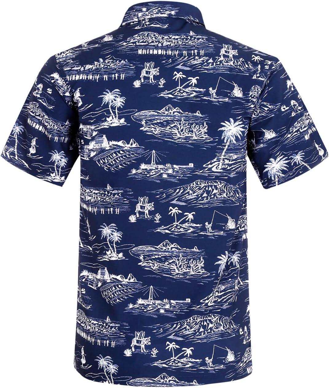 ELETOP Men’s Hawaiian Shirt Short Sleeve Button Down Casual Tropical Aloha Beach Shirts(036 Hawaii Blue)