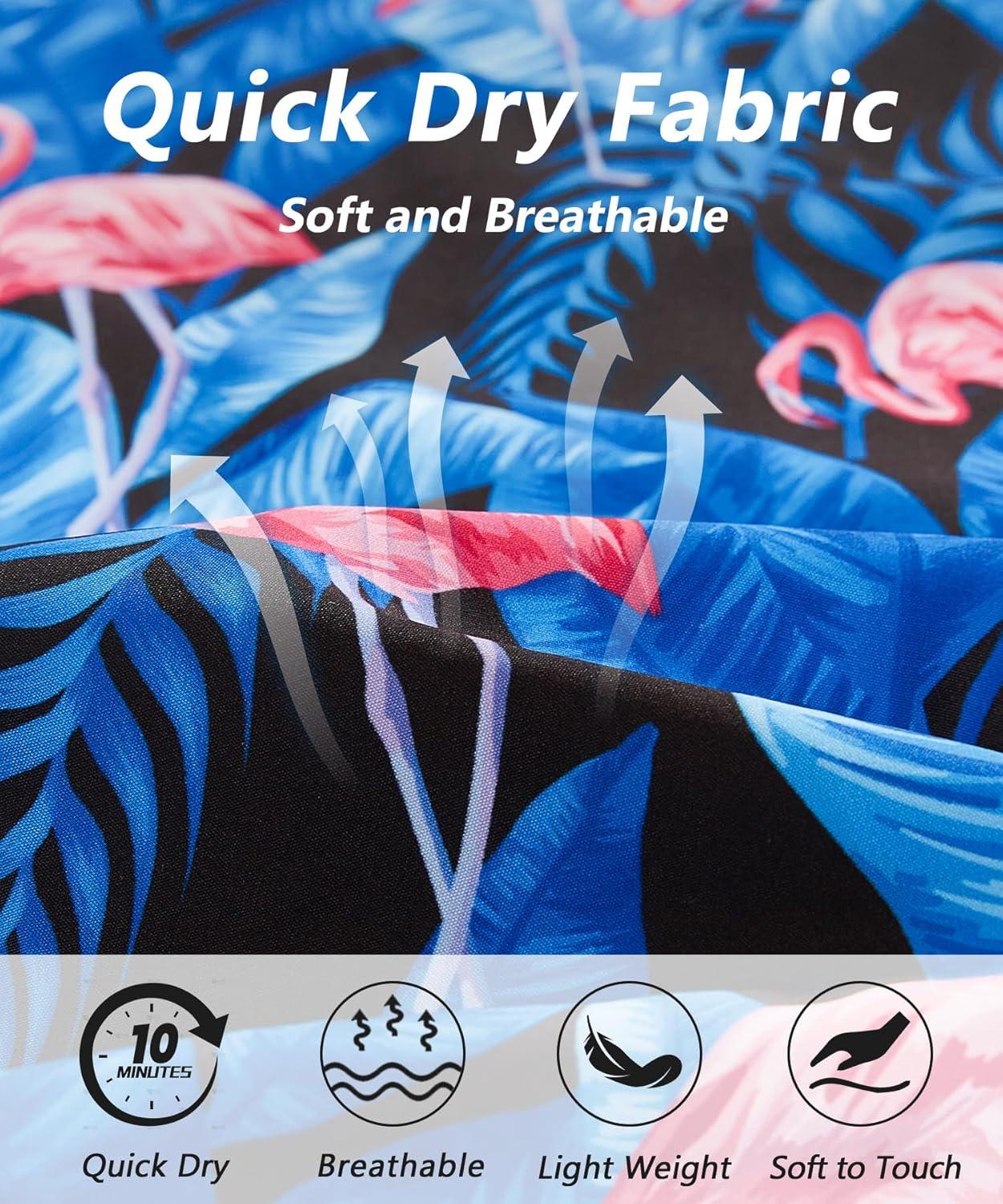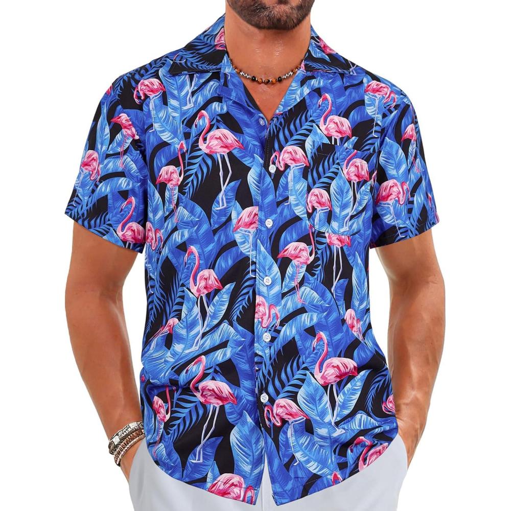 ELETOP Men’s Hawaiian Shirt Short Sleeve Button Down Casual Tropical Aloha Beach Shirts(040 Flamingo Blue)