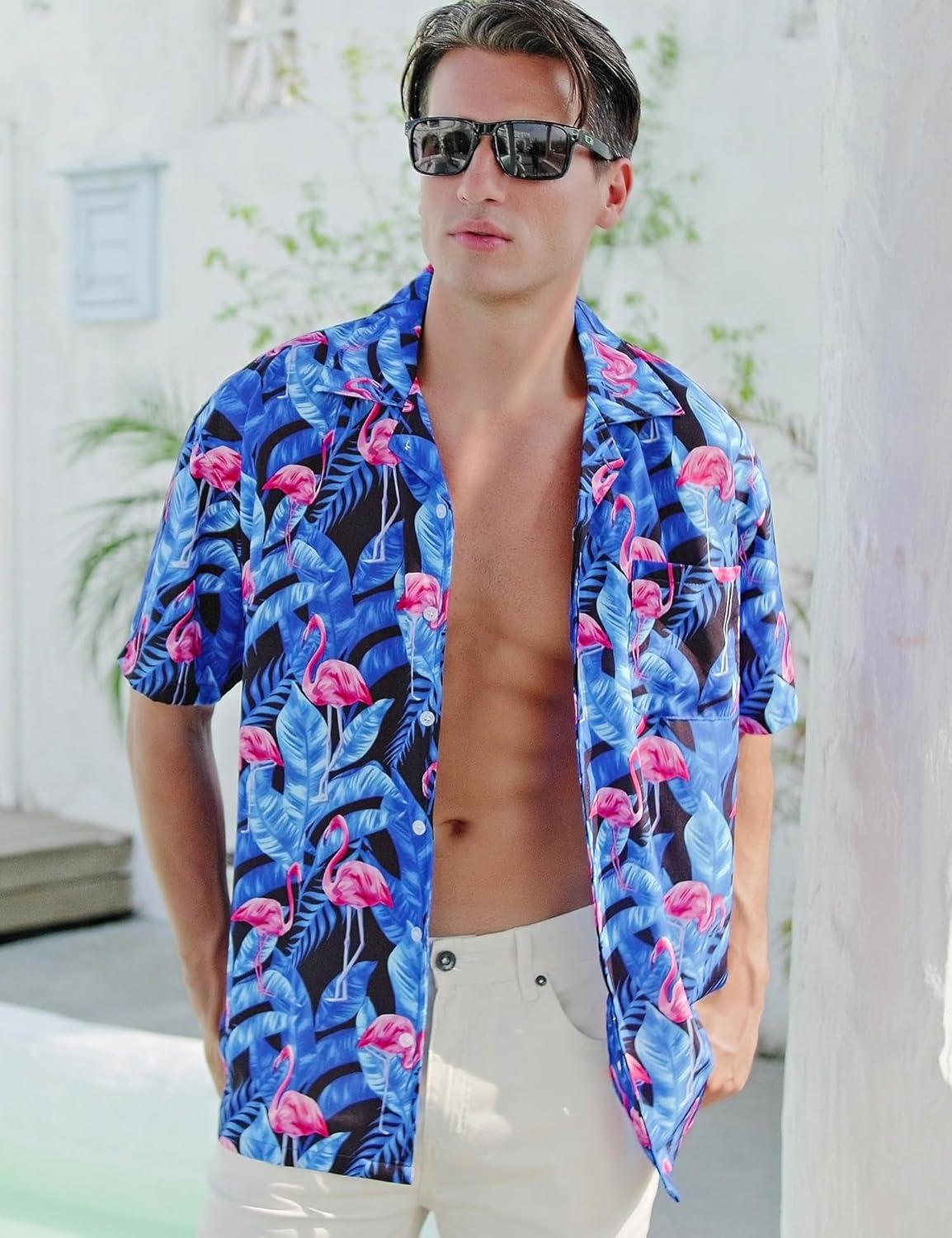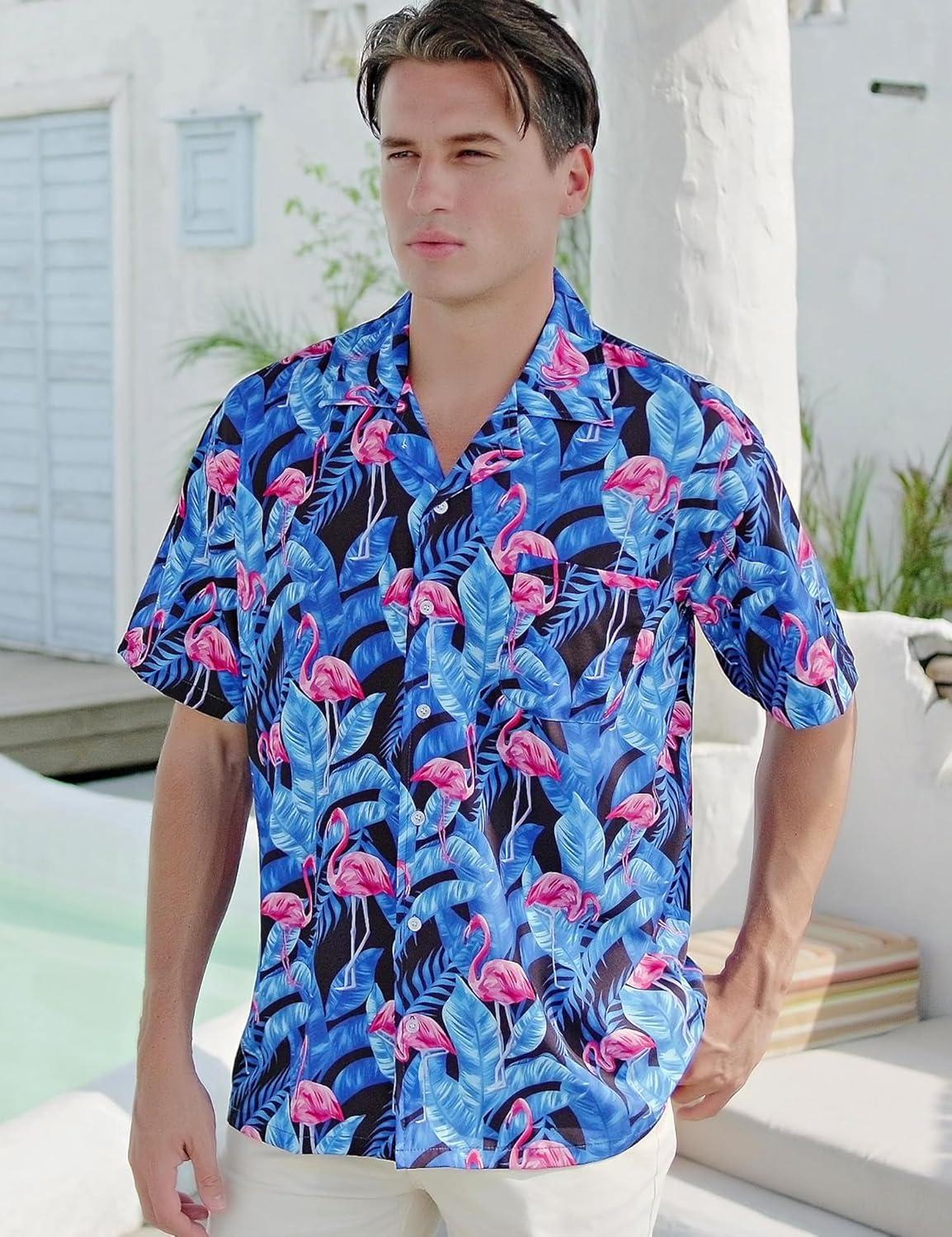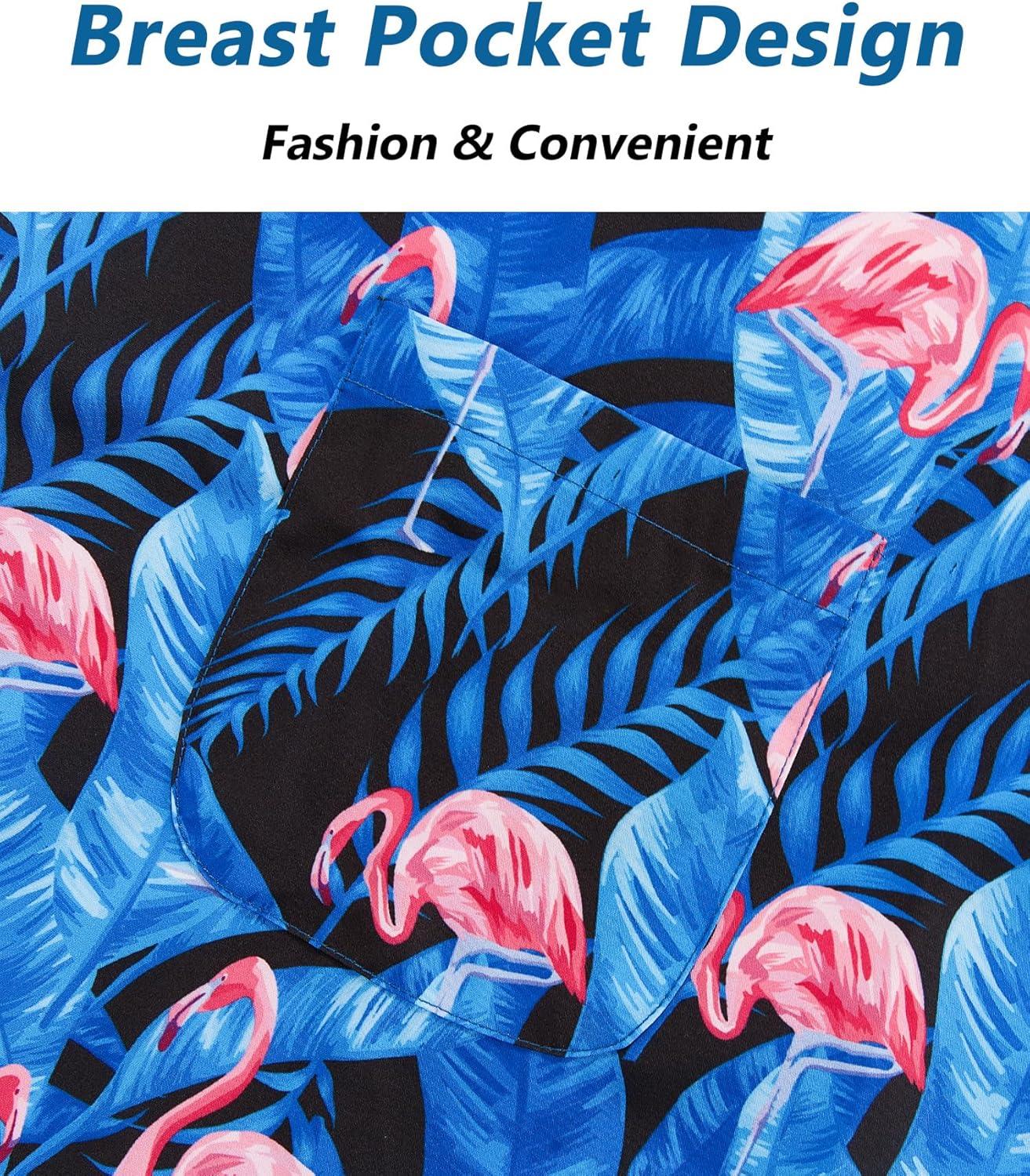 ELETOP Men's Hawaiian Shirt Short Sleeve Button Down Casual Tropical Aloha Beach Shirts(040 Flamingo Blue)