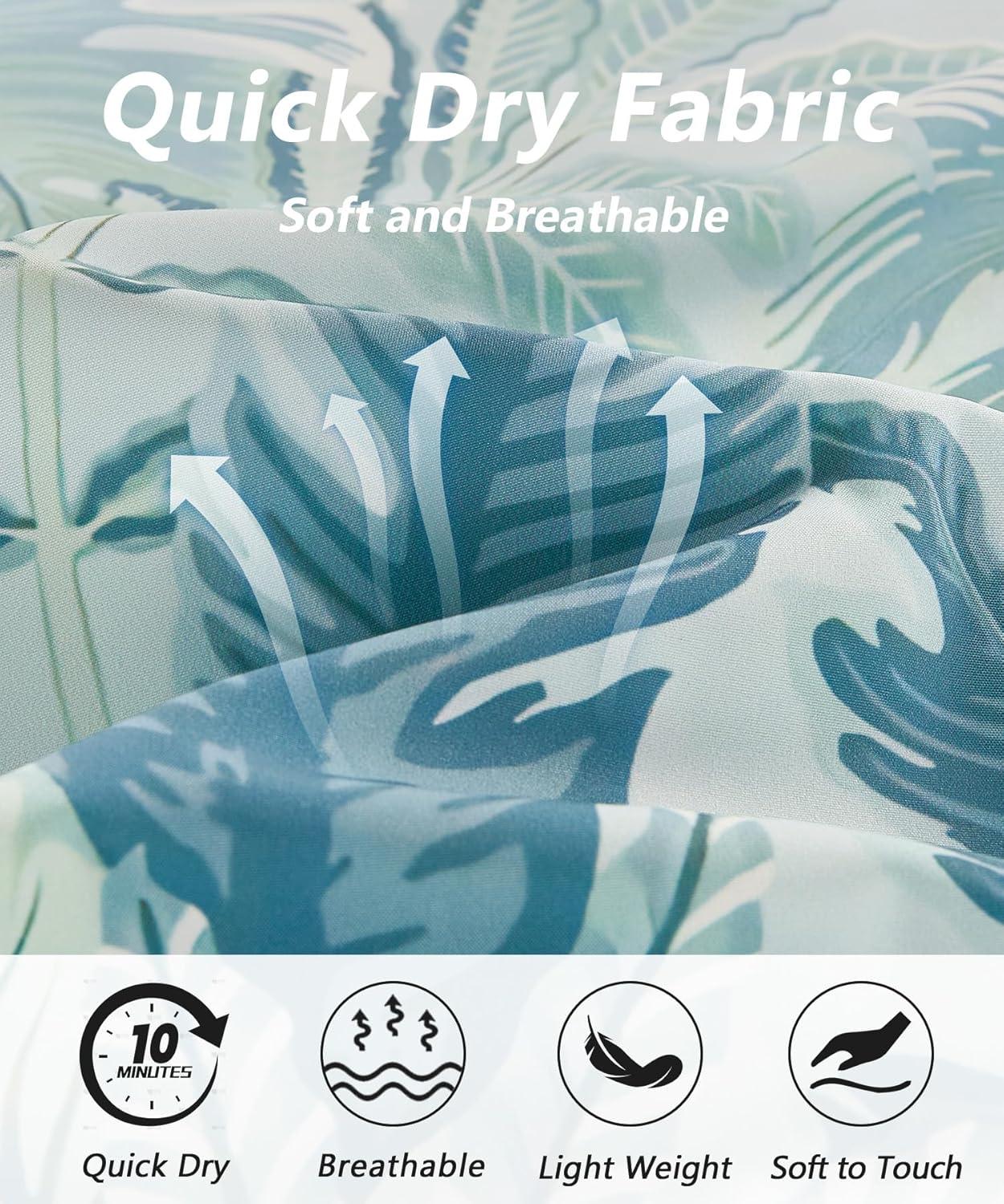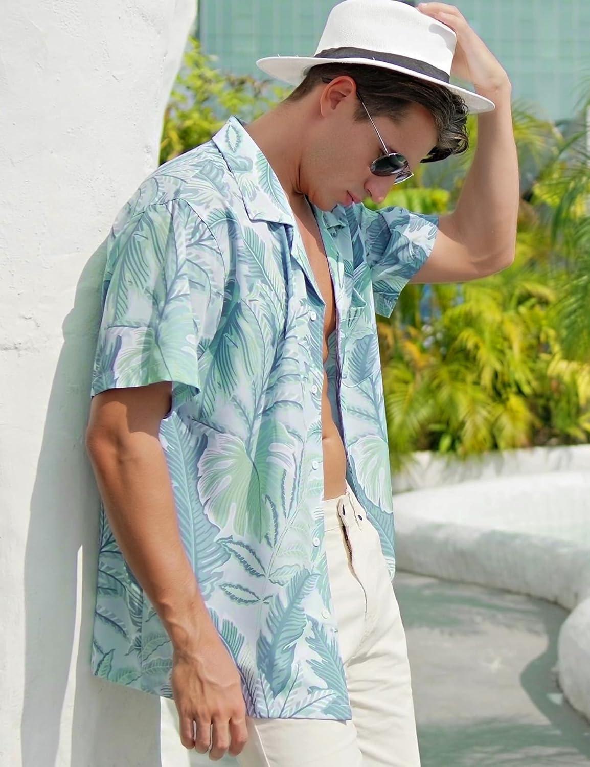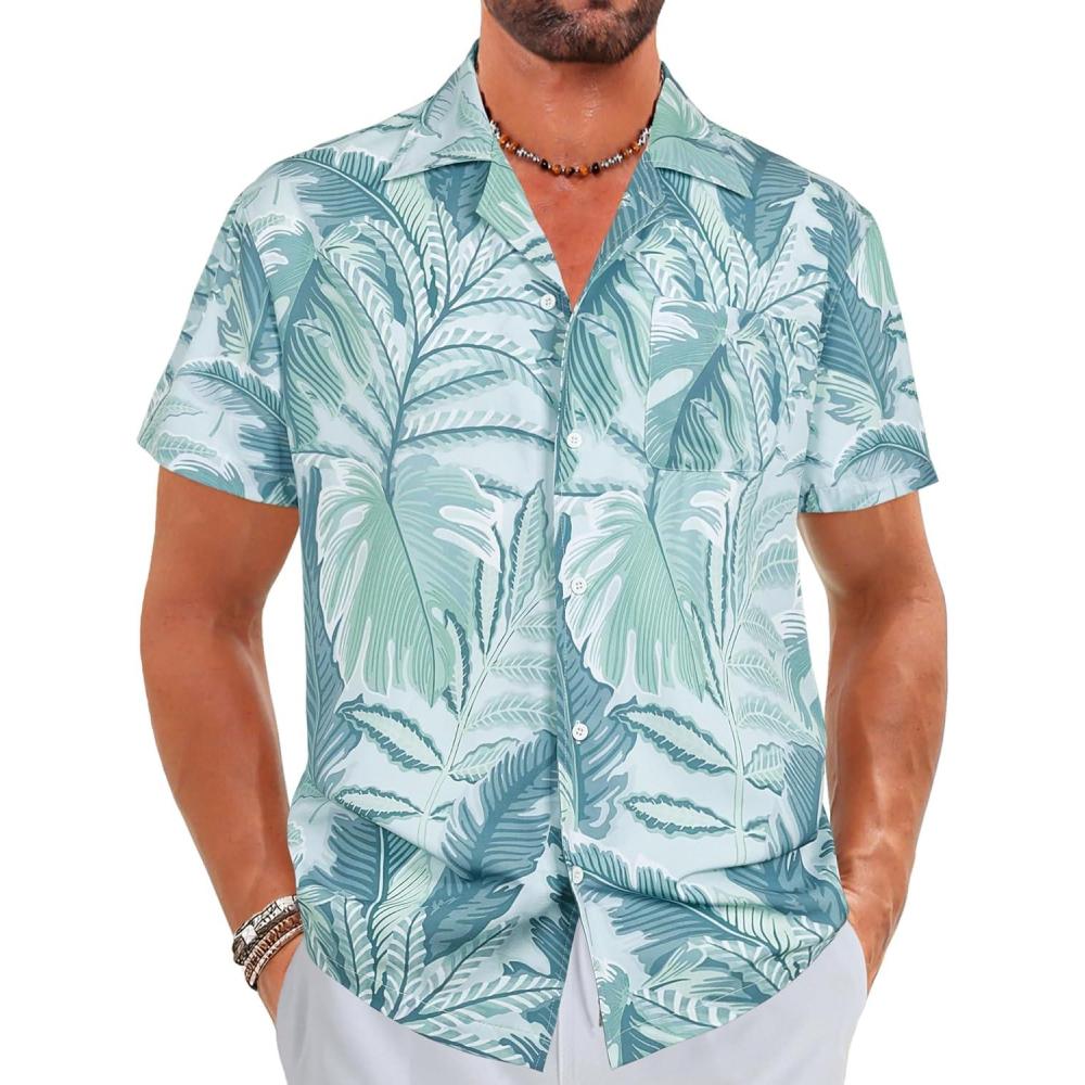 ELETOP Men’s Hawaiian Shirt Short Sleeve Button Down Casual Tropical Aloha Beach Shirts(132 Palm Grey Blue)