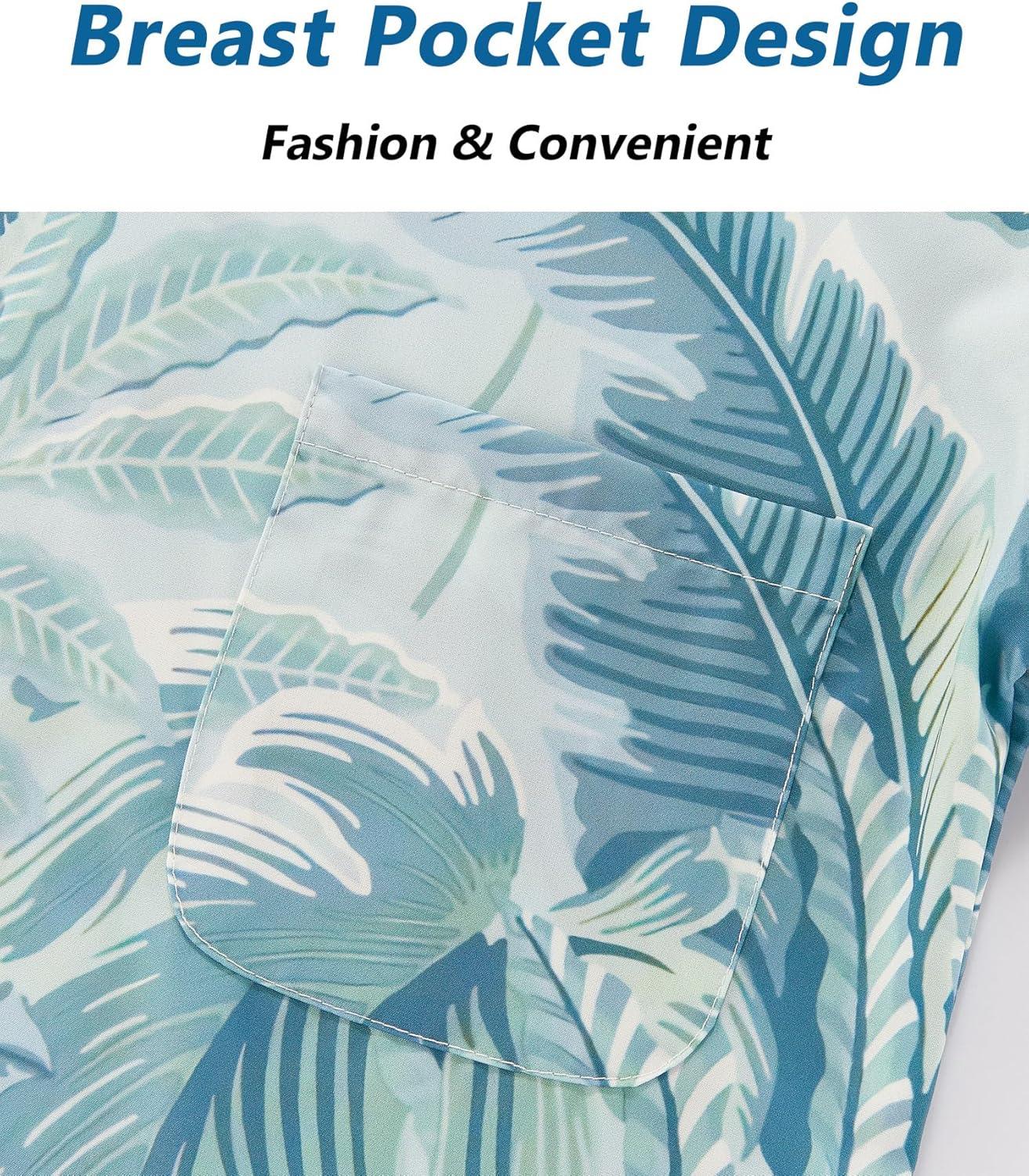 ELETOP Men’s Hawaiian Shirt Short Sleeve Button Down Casual Tropical Aloha Beach Shirts(240 Palm Leaf Dark Blue)