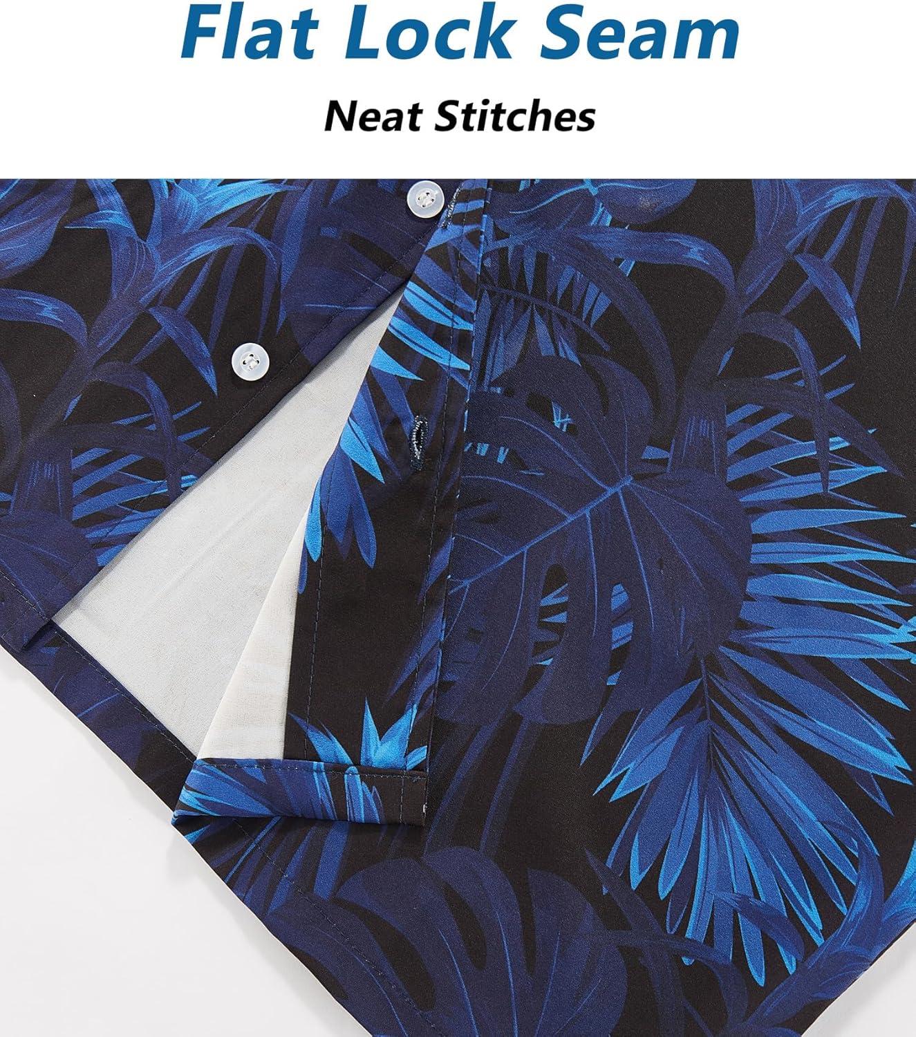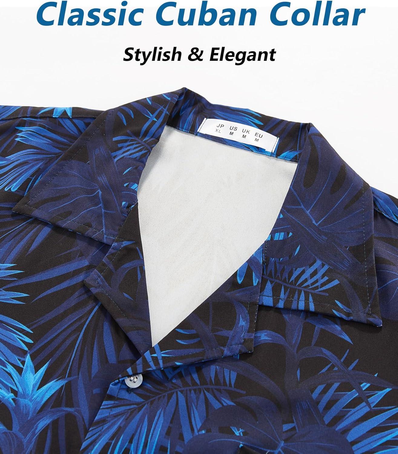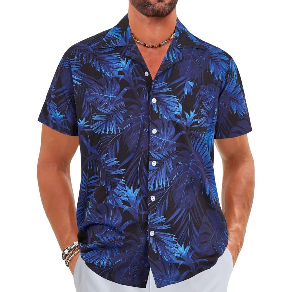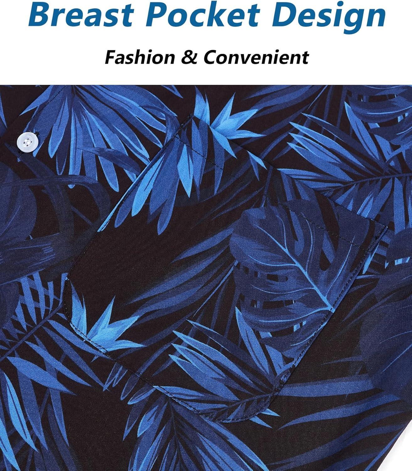 ELETOP Men’s Hawaiian Shirt Short Sleeve Button Down Casual Tropical Aloha Beach Shirts(041 Blue)