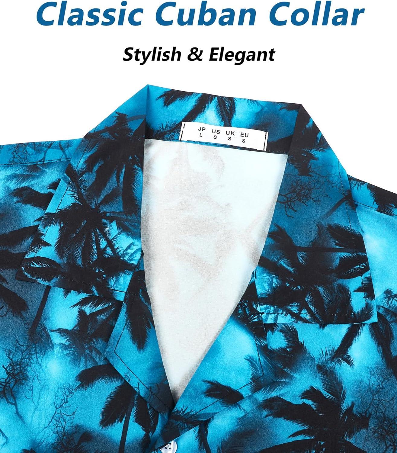 ELETOP Men's Hawaiian Shirt Short Sleeve Button Down Casual Tropical Aloha Beach Shirts(202 Coconut Tree Blue)