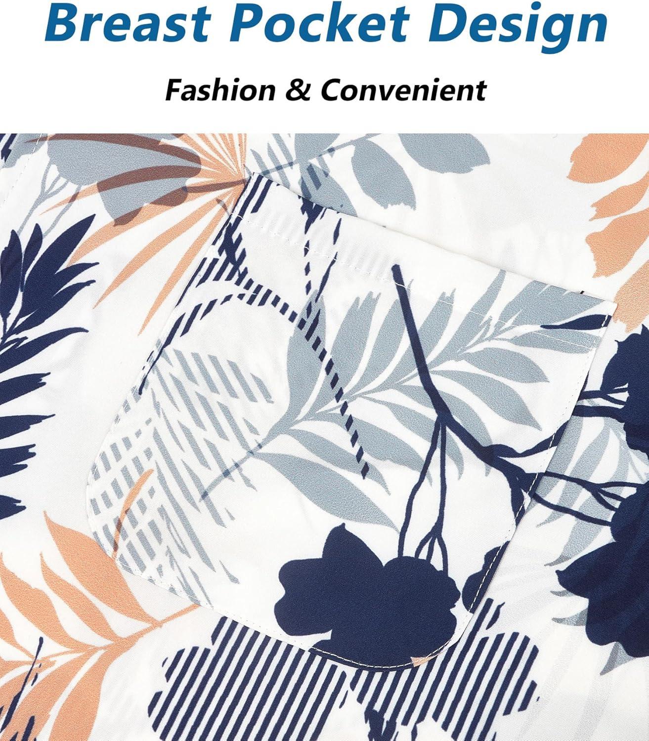 ELETOP Men’s Hawaiian Shirt Short Sleeve Button Down Casual Tropical Aloha Beach Shirts(206 Leaf Blue White)