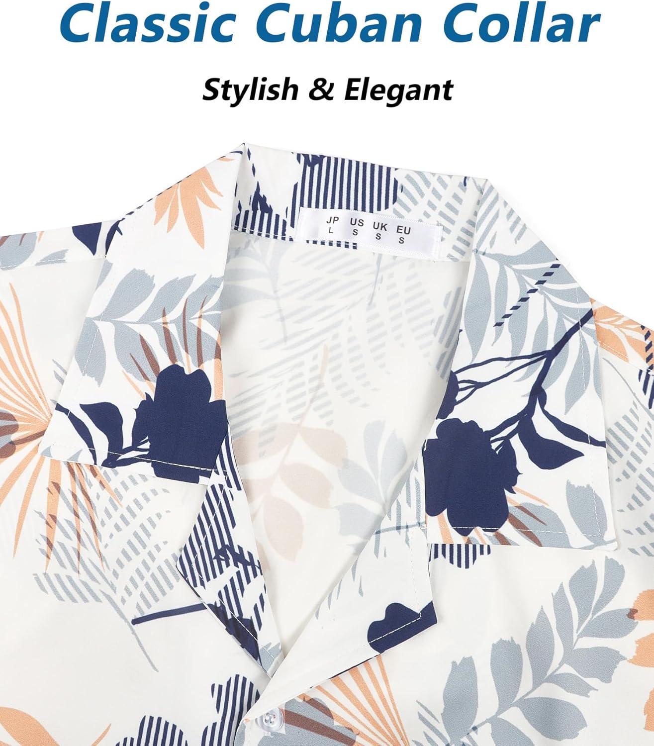 ELETOP Men's Hawaiian Shirt Short Sleeve Button Down Casual Tropical Aloha Beach Shirts(206 Leaf Blue White)