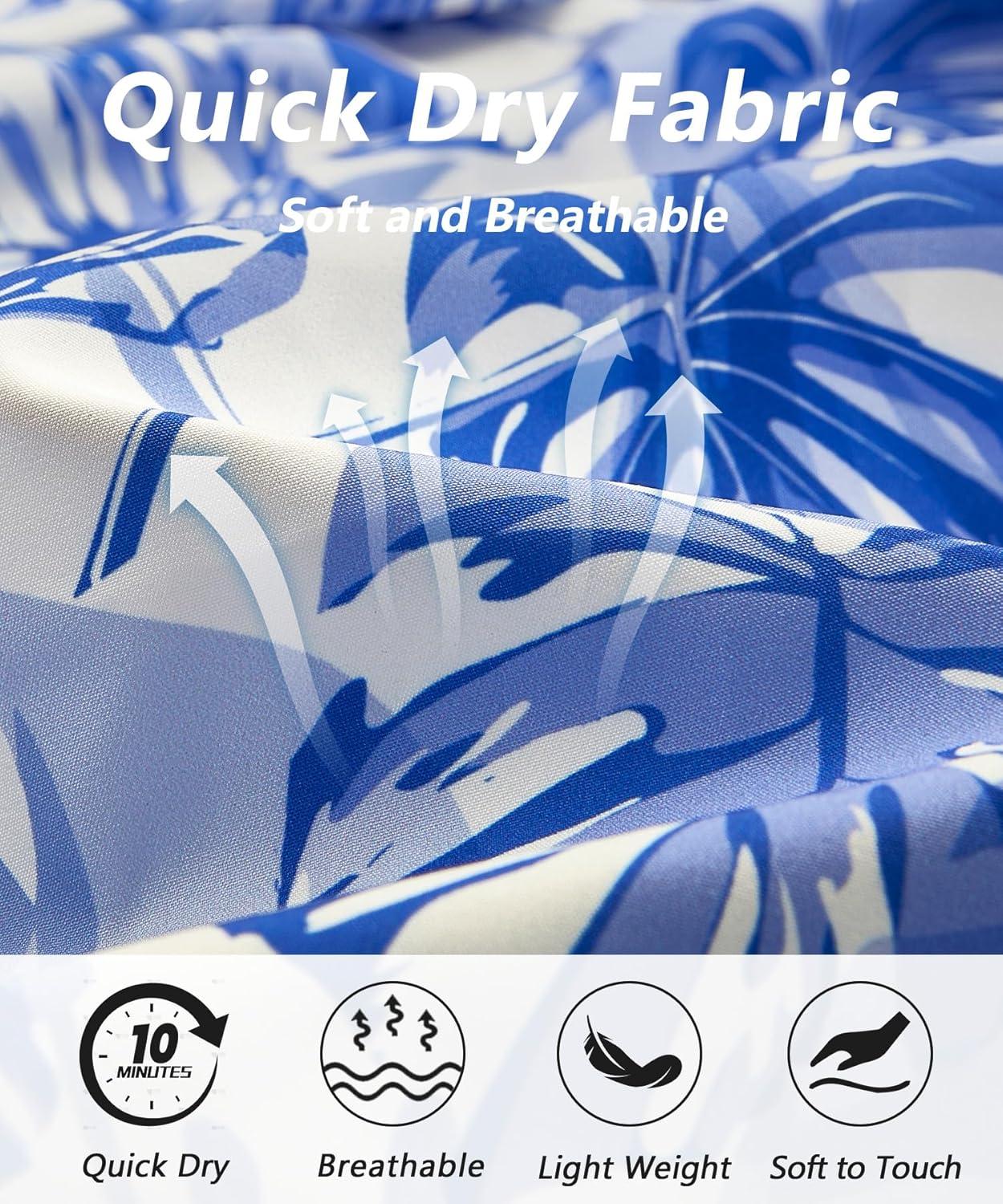 ELETOP Men’s Hawaiian Shirt Short Sleeve Button Down Casual Tropical Aloha Beach Shirts(237 Palm Leaf Blue)