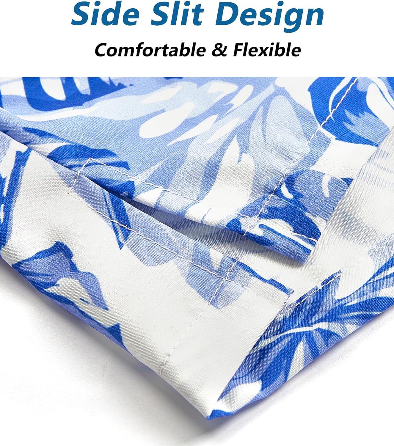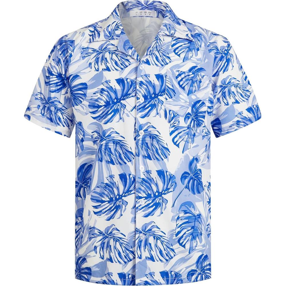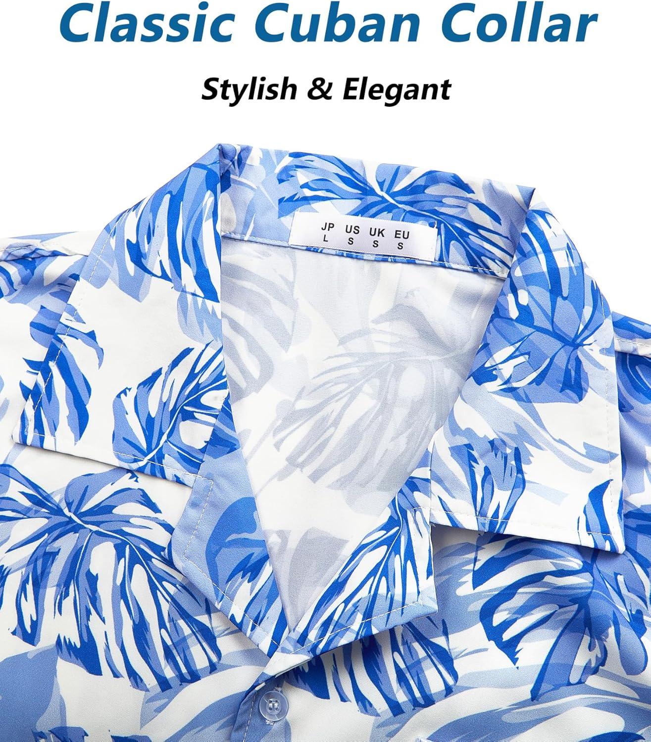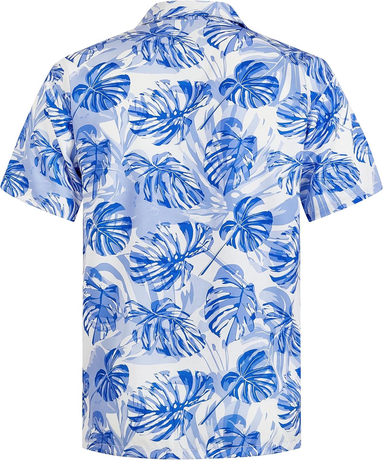 ELETOP Men's Hawaiian Shirt Short Sleeve Button Down Casual Tropical Aloha Beach Shirts(237 Palm Leaf Blue)