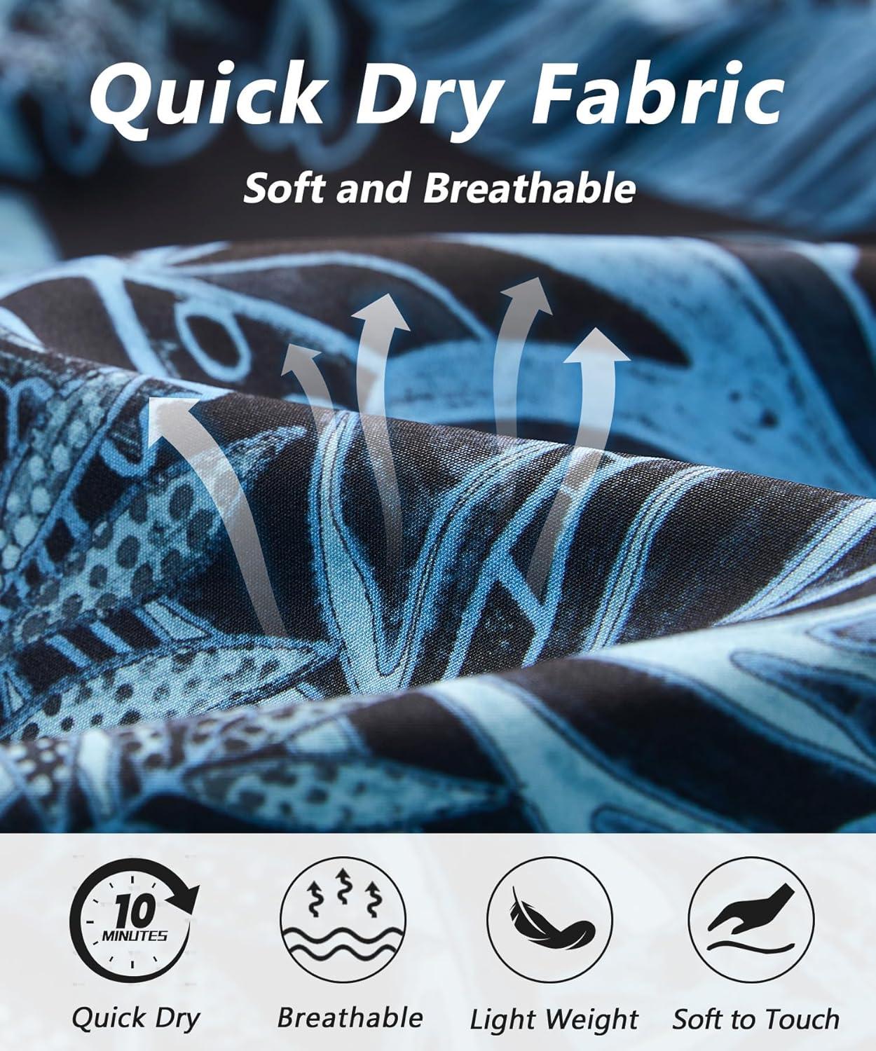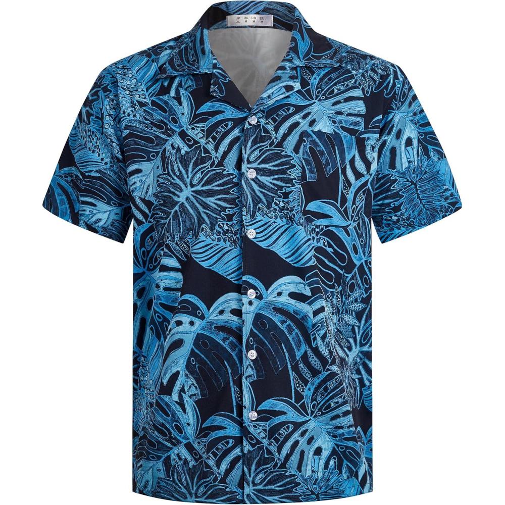 ELETOP Men’s Hawaiian Shirt Short Sleeve Button Down Casual Tropical Aloha Beach Shirts(240 Palm Leaf Dark Blue)