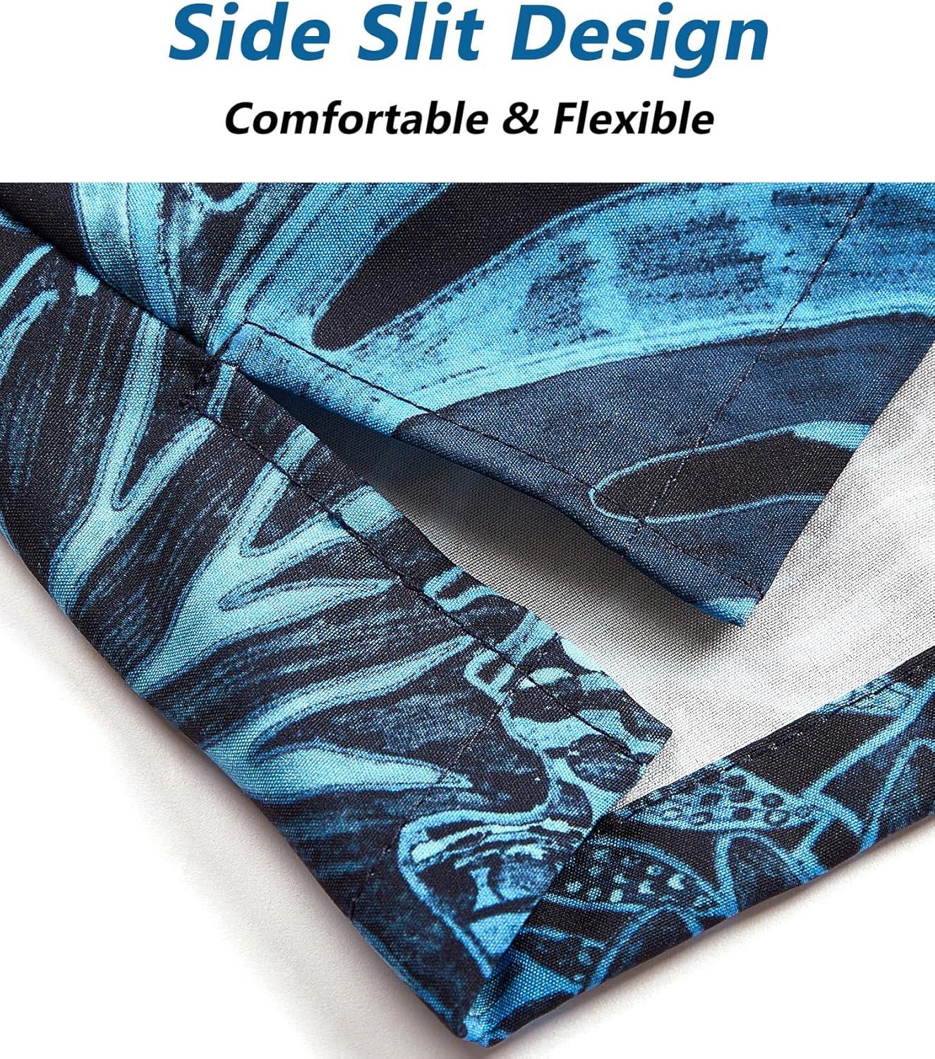 imageELETOP Mens Hawaiian Shirt Short Sleeve Button Down Casual Tropical Aloha Beach Shirts240 Palm Leaf Dark Blue
