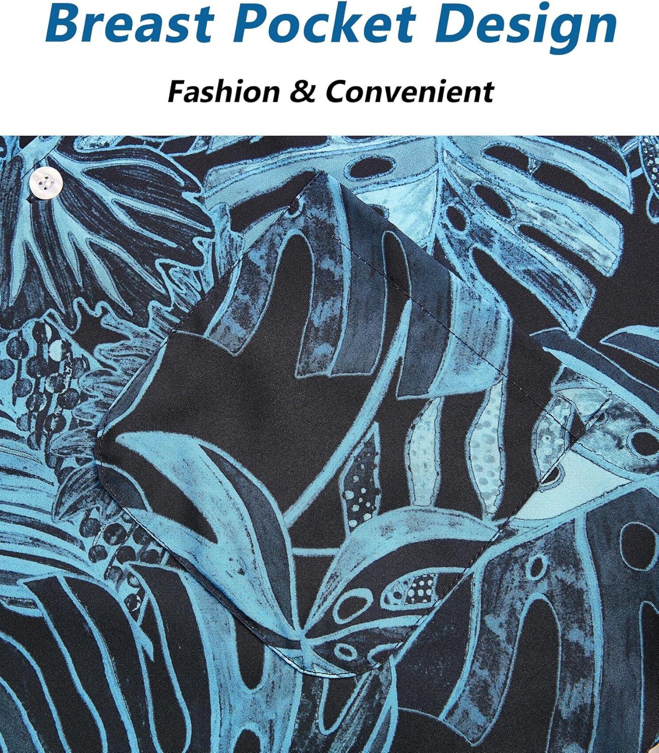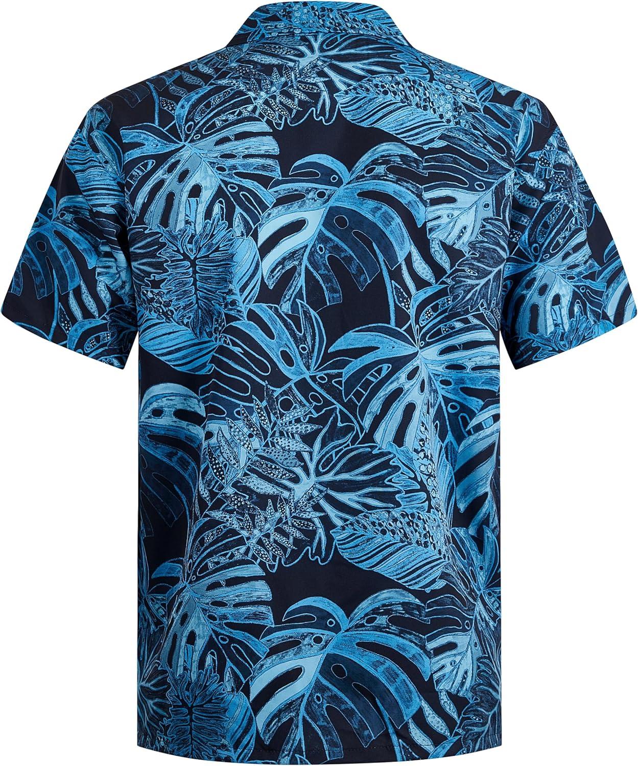 ELETOP Men's Hawaiian Shirt Short Sleeve Button Down Casual Tropical Aloha Beach Shirts(240 Palm Leaf Dark Blue)