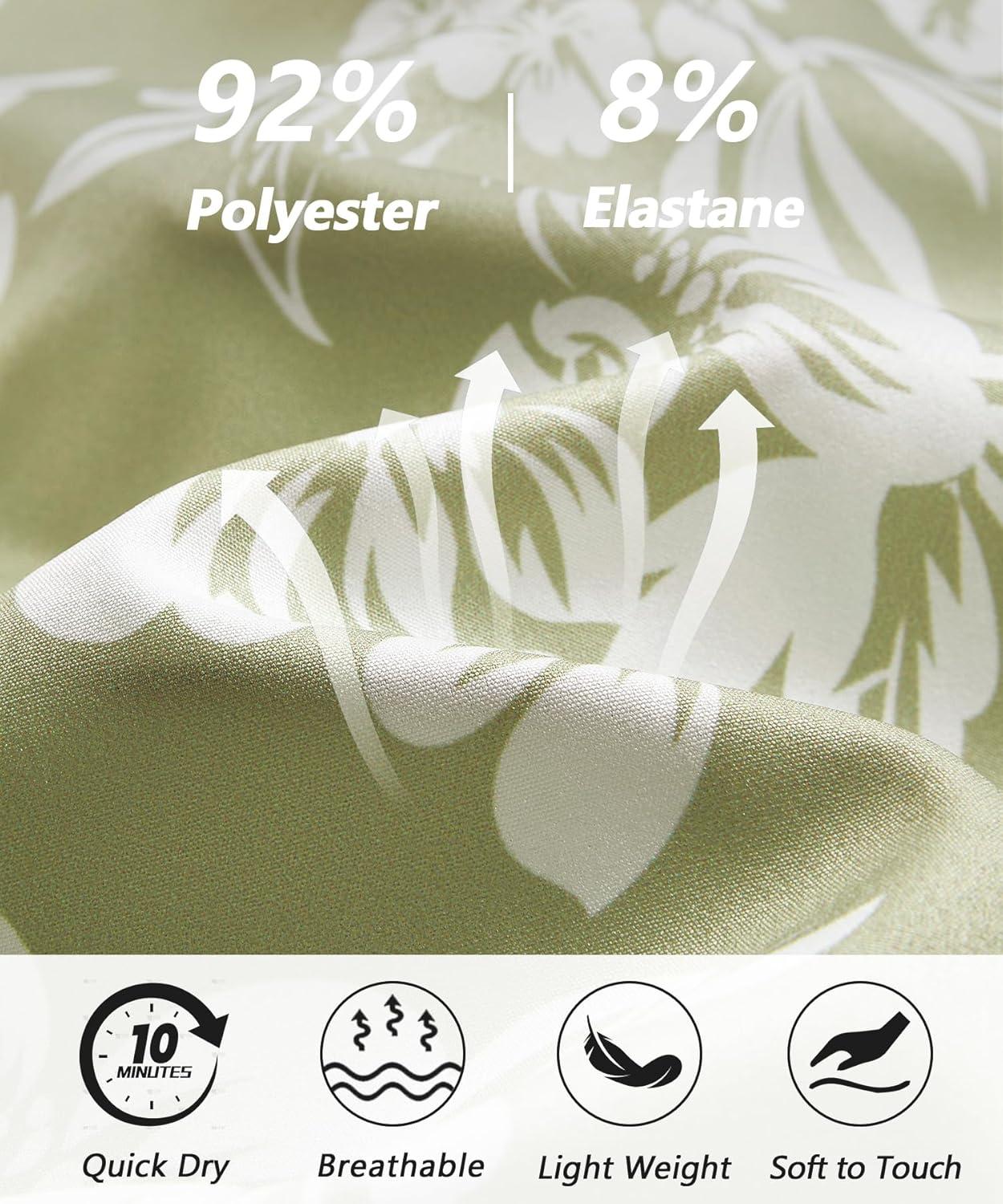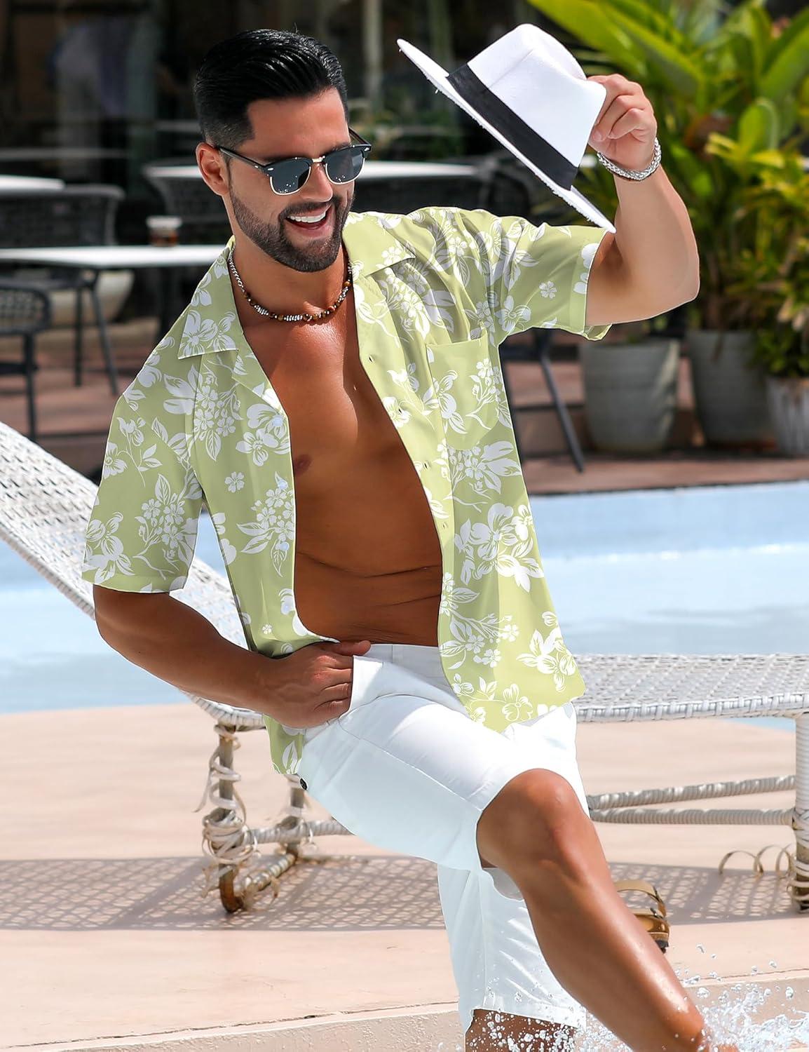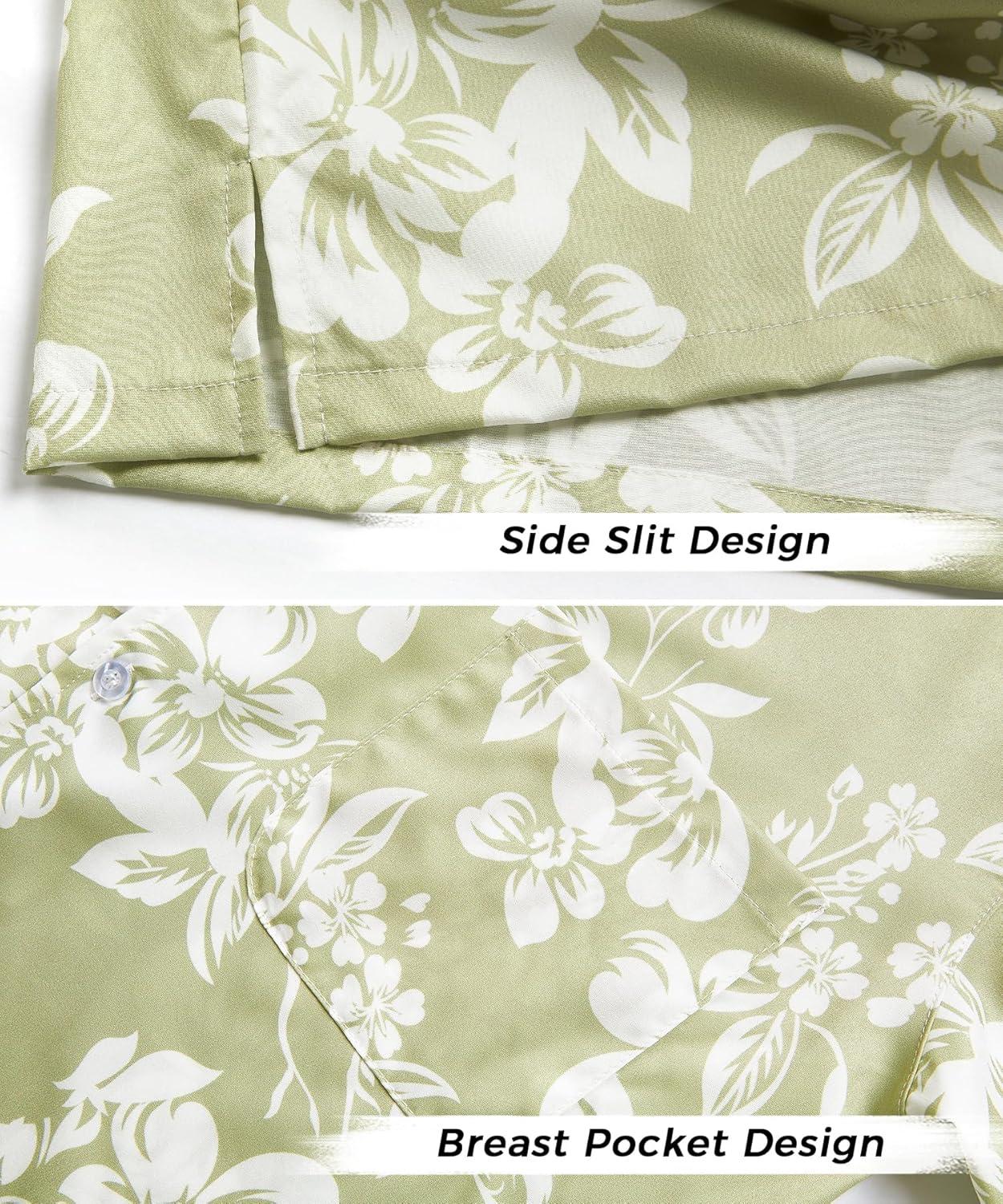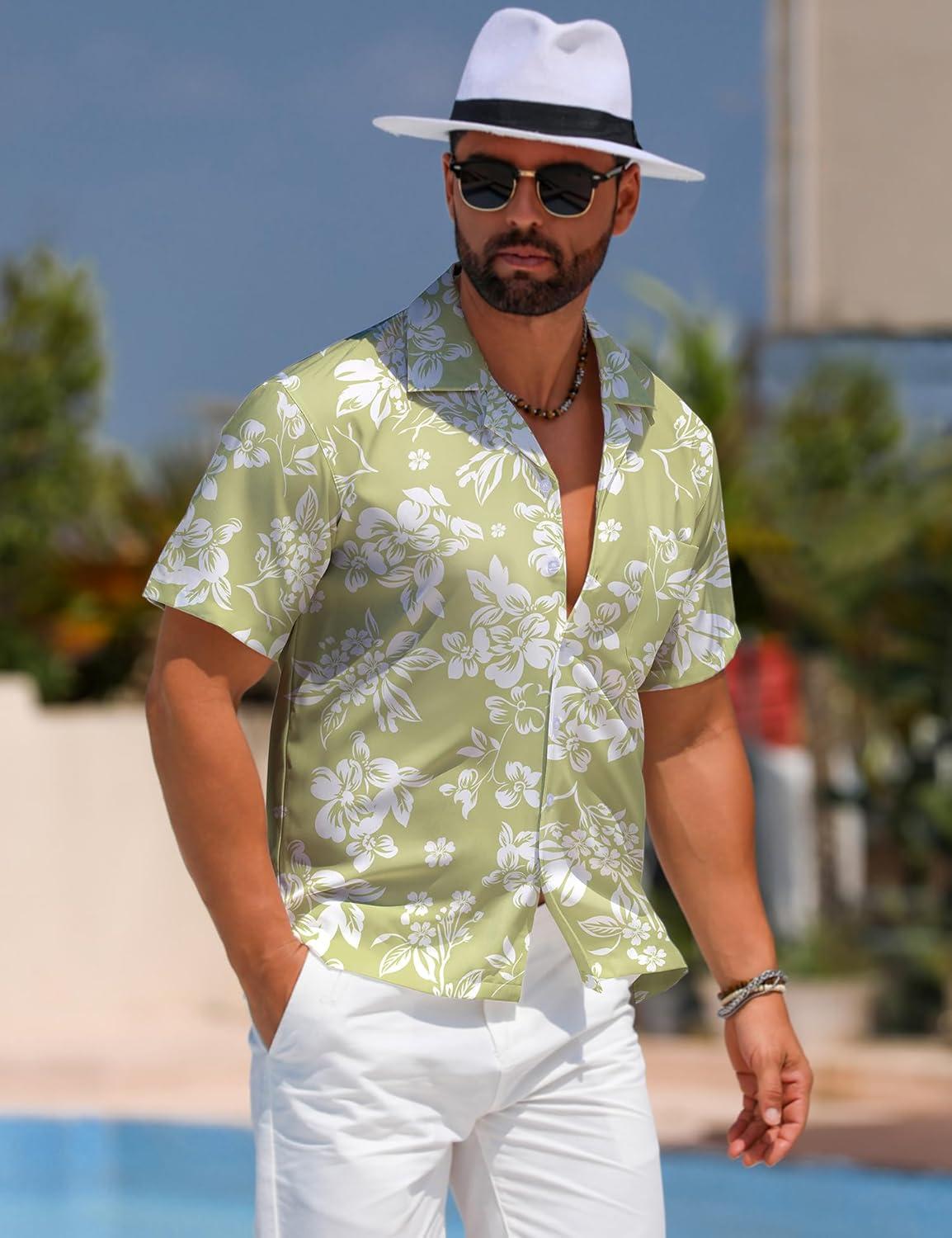 ELETOP Men’s Hawaiian Shirt Short Sleeve Button Down Casual Tropical Aloha Beach Shirts(258 Light Green White Flower)