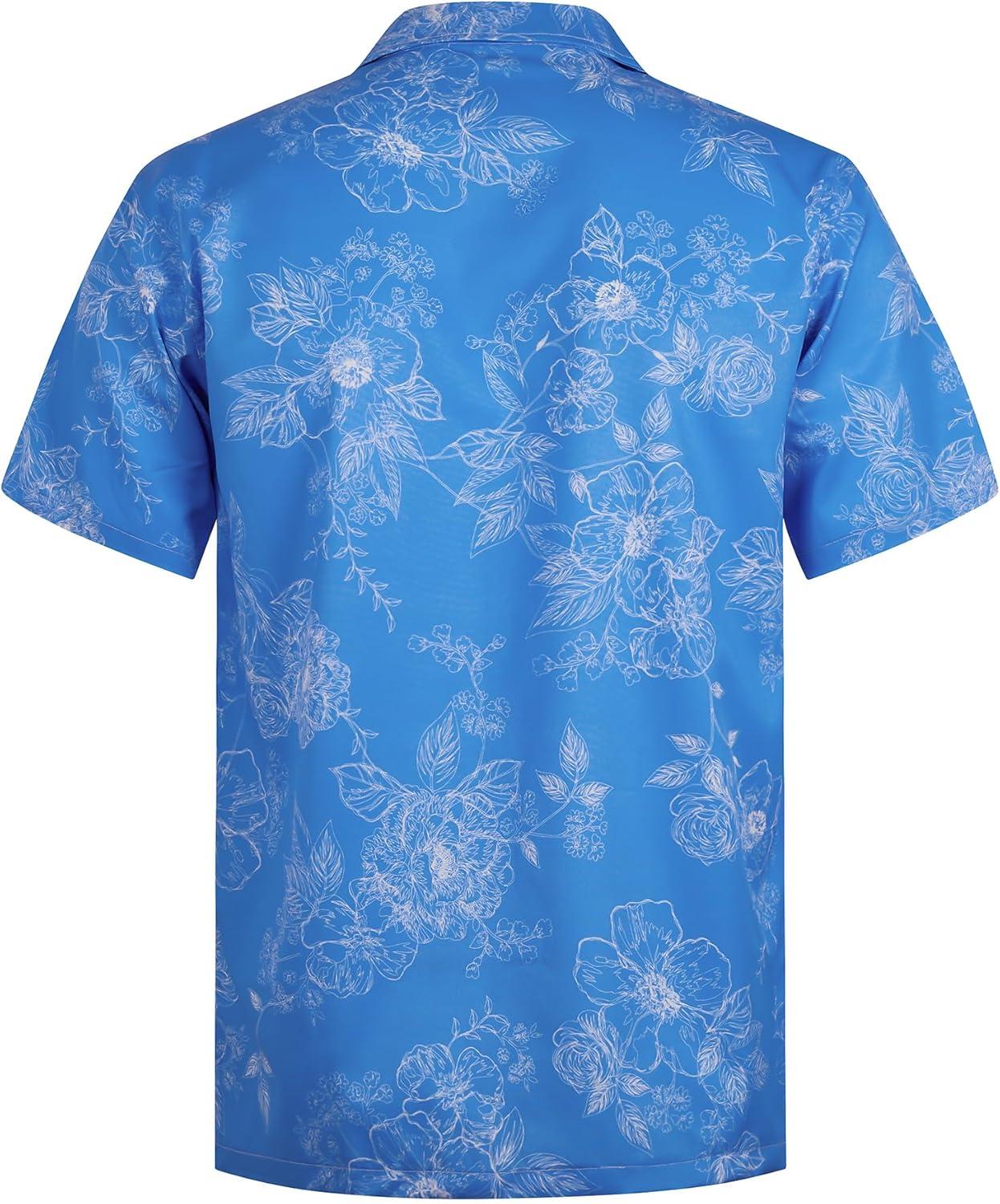 ELETOP Men’s Hawaiian Shirt Short Sleeve Button Down Casual Tropical Aloha Beach Shirts(041 Blue)