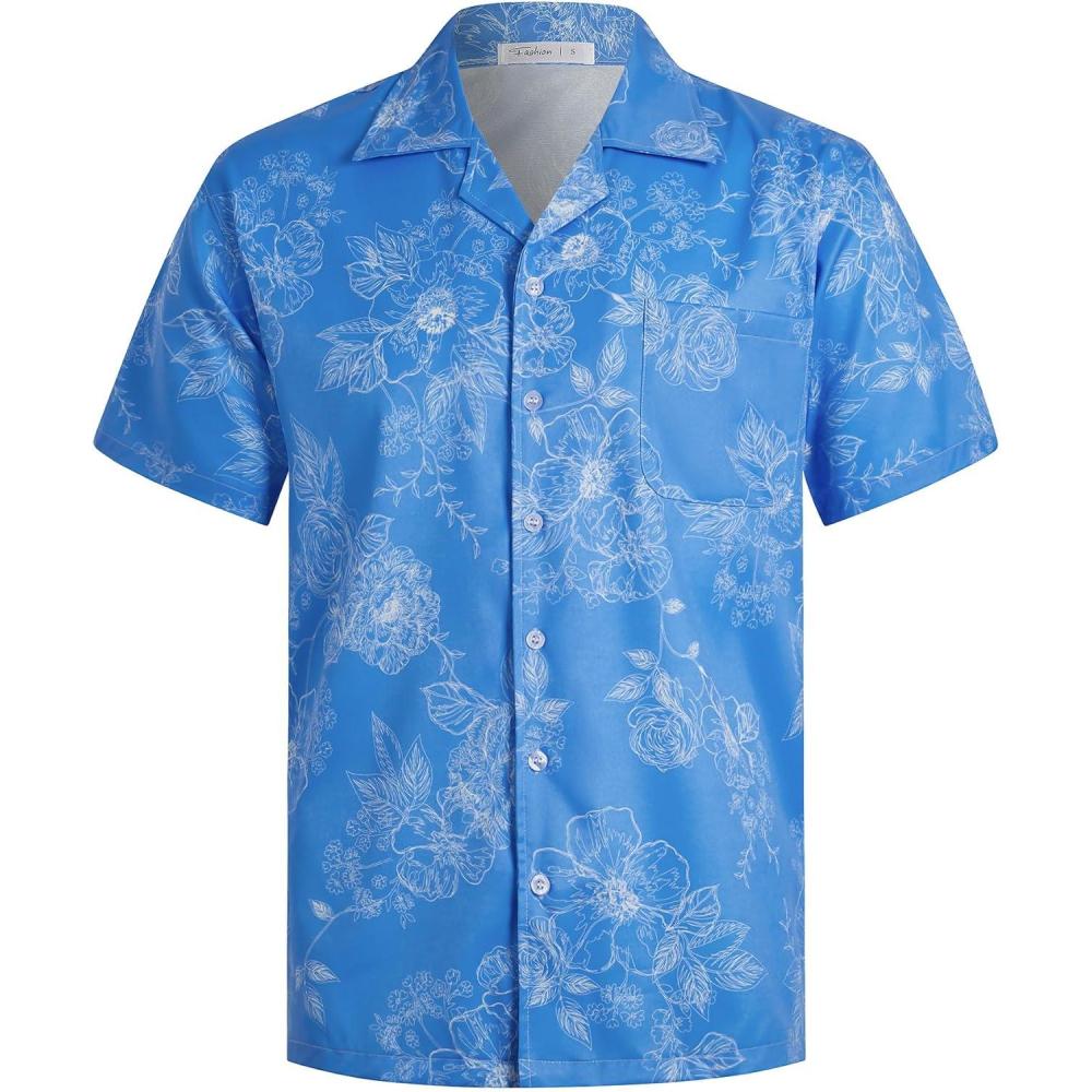 ELETOP Men’s Hawaiian Shirt Short Sleeve Button Down Casual Tropical Aloha Beach Shirts(263 White Flower Blue)