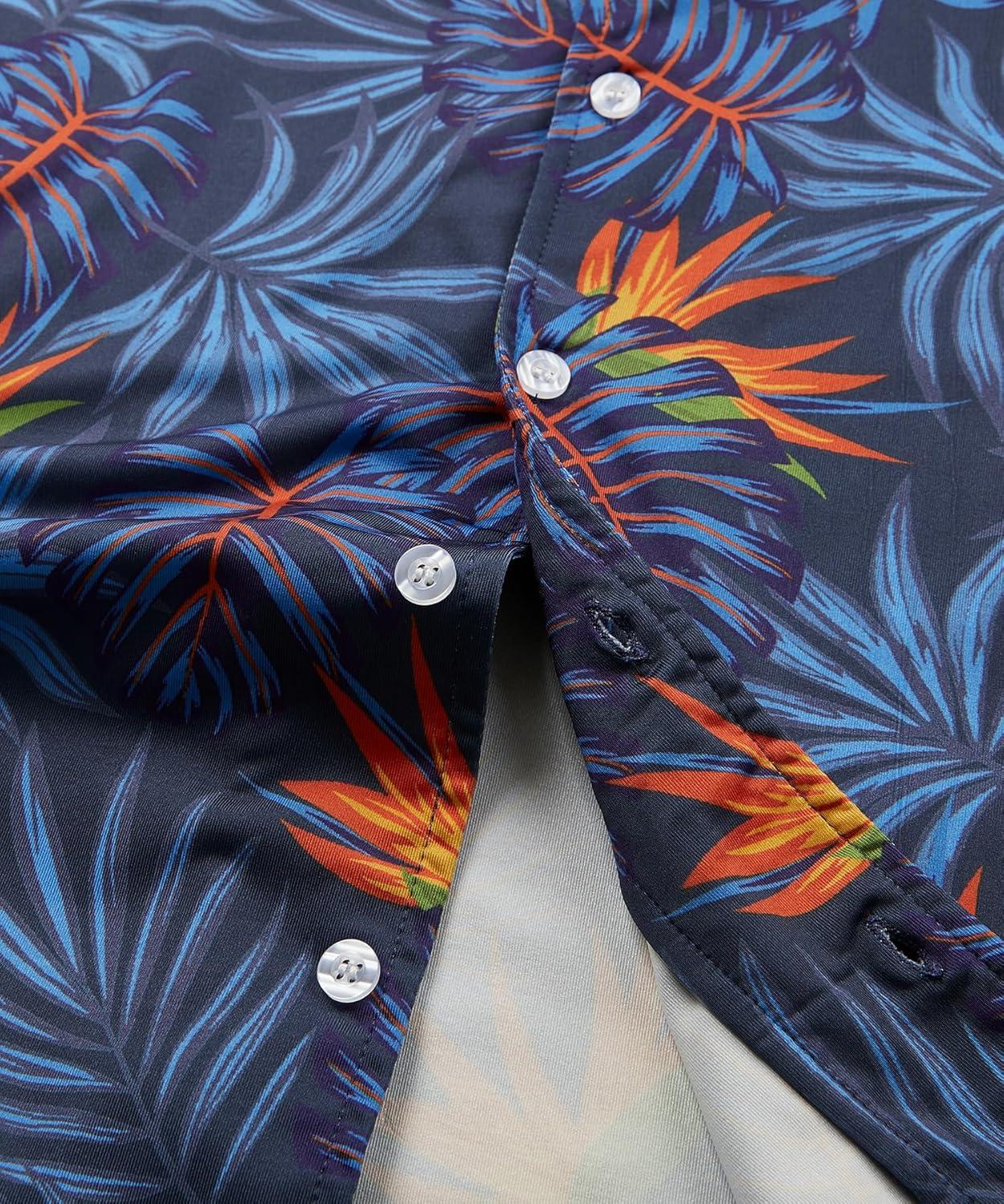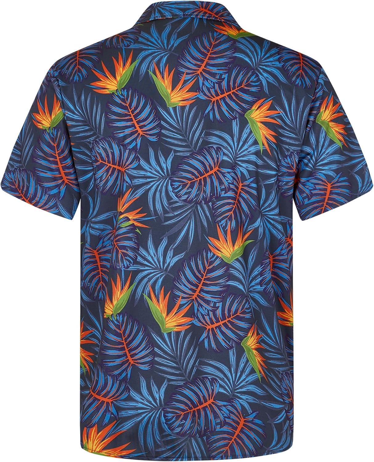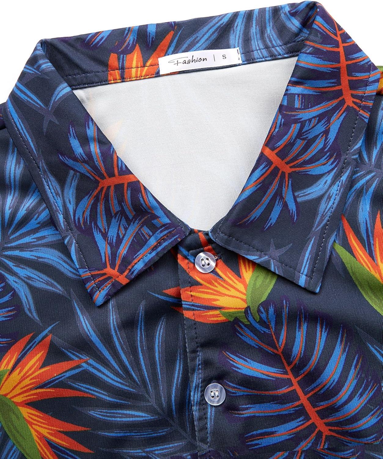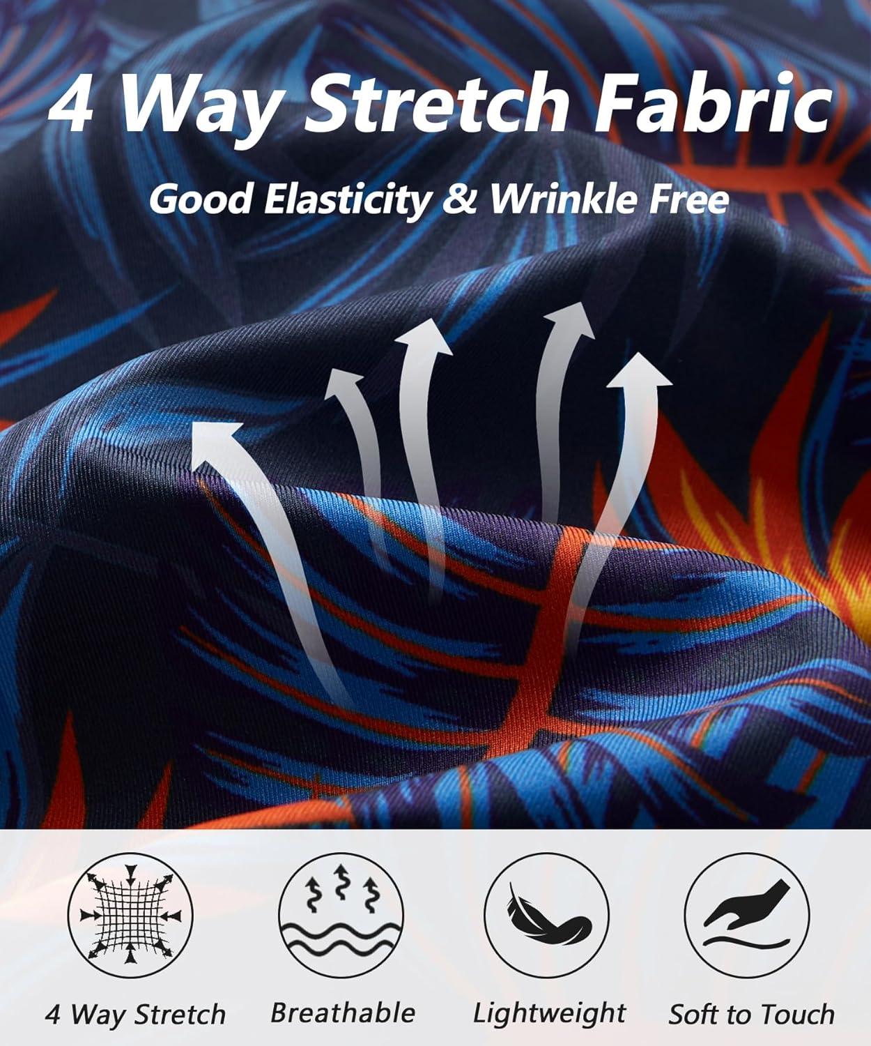 ELETOP Men's Hawaiian Shirt Summer Stretch Short Sleeve Tropical Beach Button Down Casual Shirt(M117 Leaf Blue)