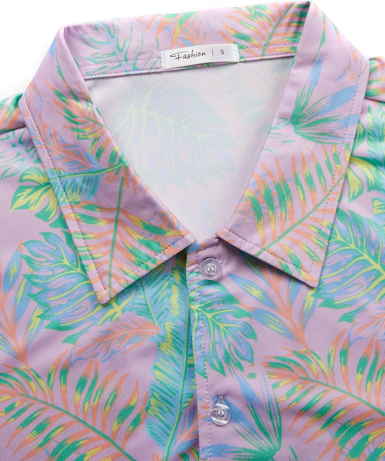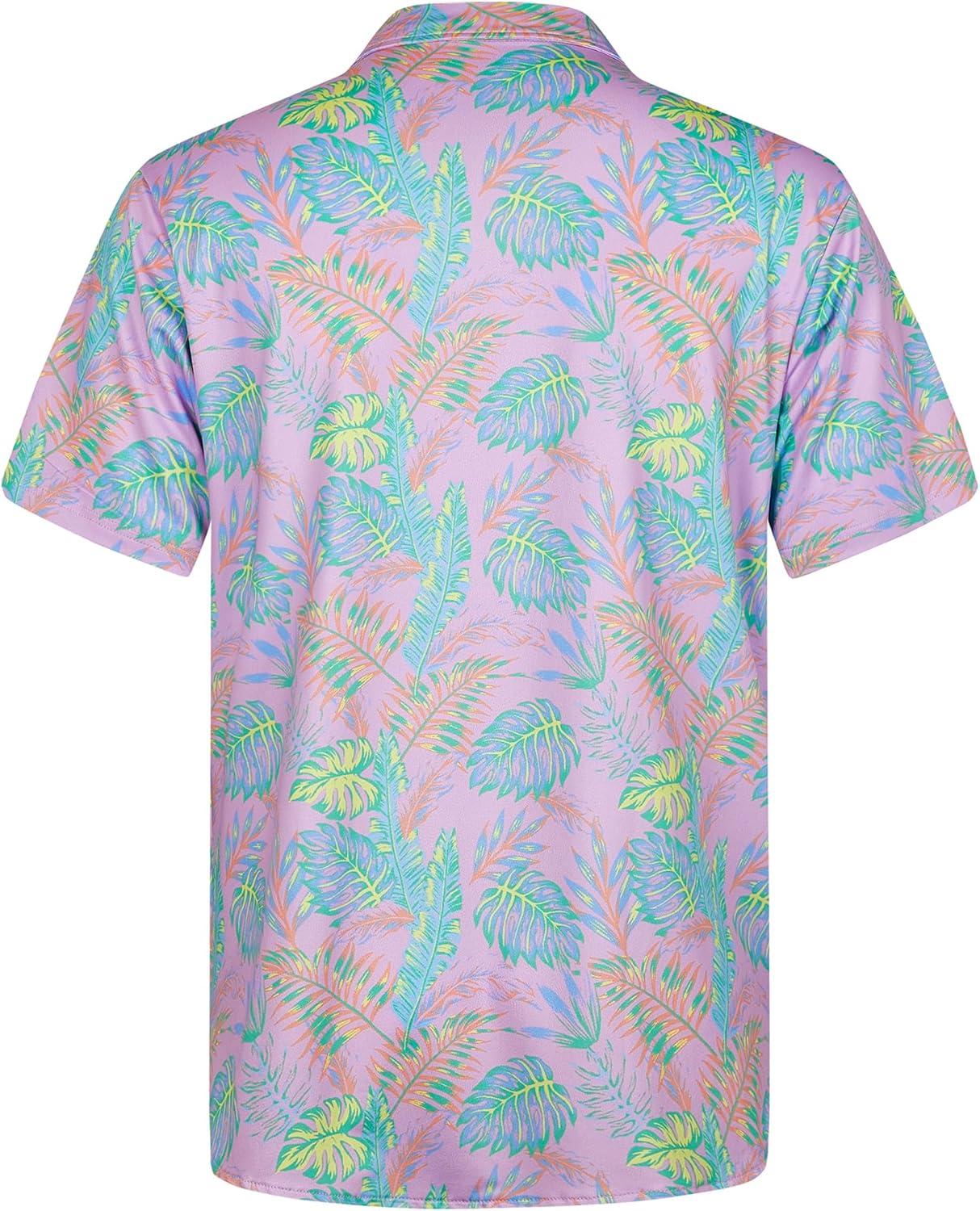 ELETOP Men's Hawaiian Shirt Summer Stretch Short Sleeve Tropical Beach Button Down Casual Shirt(M119 Leaf Pink)