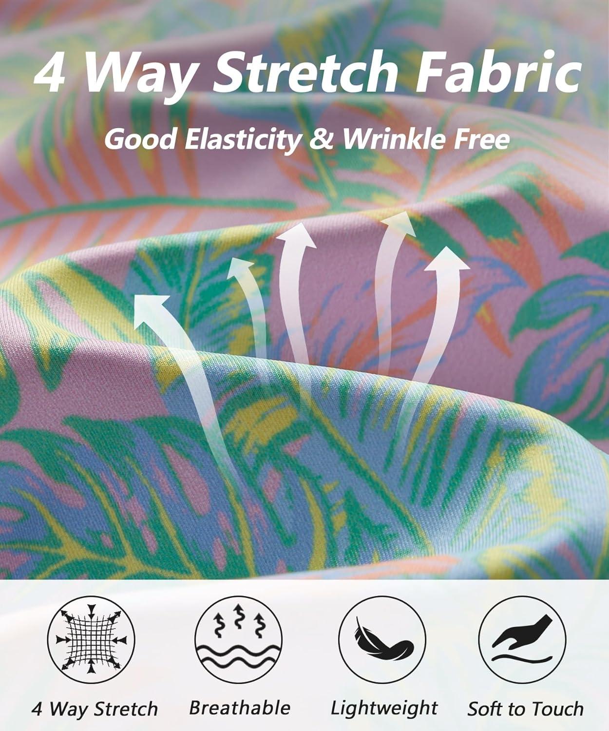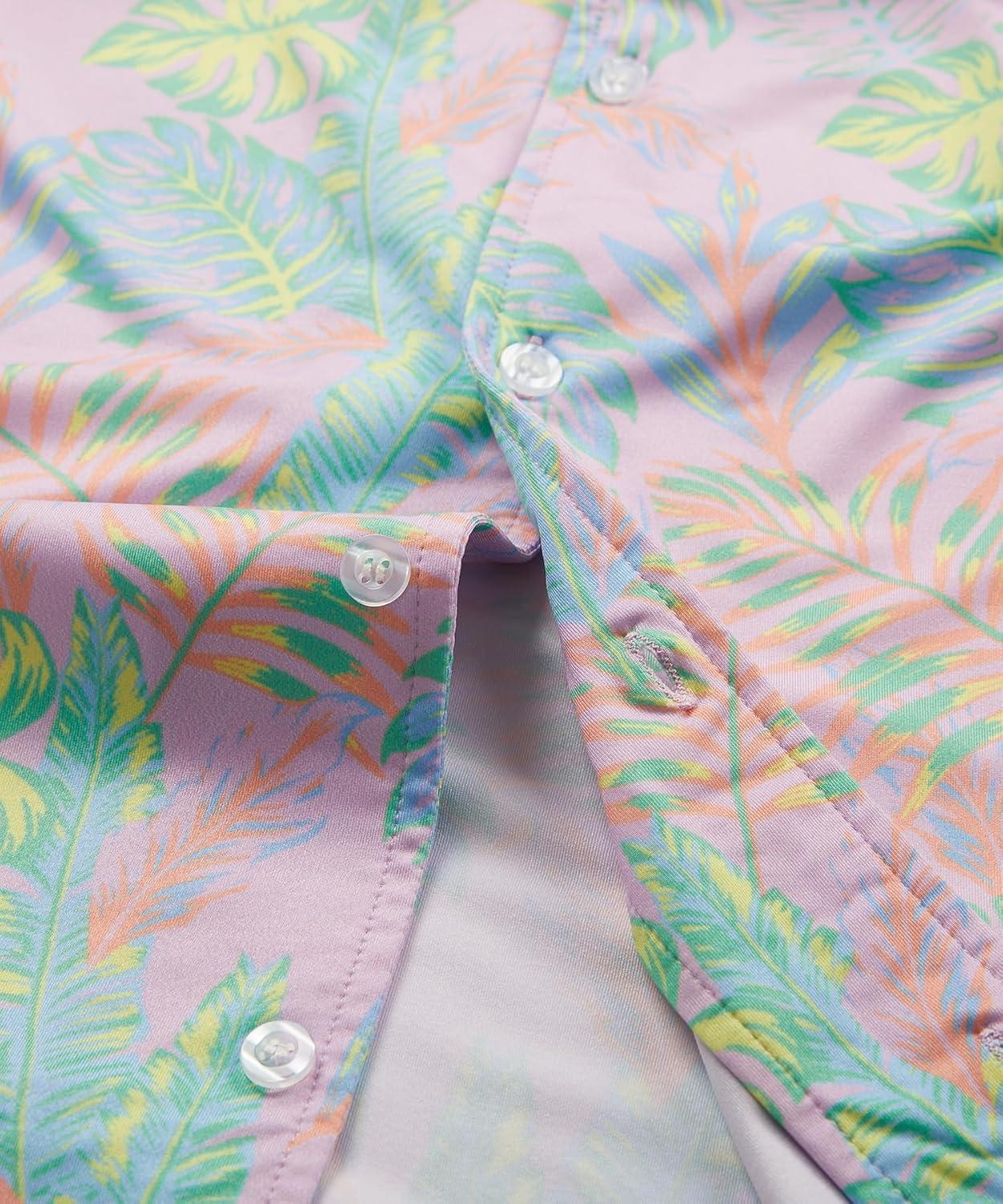 ELETOP Men’s Hawaiian Shirt Summer Stretch Short Sleeve Tropical Beach Button Down Casual Shirt(M119 Leaf Pink)