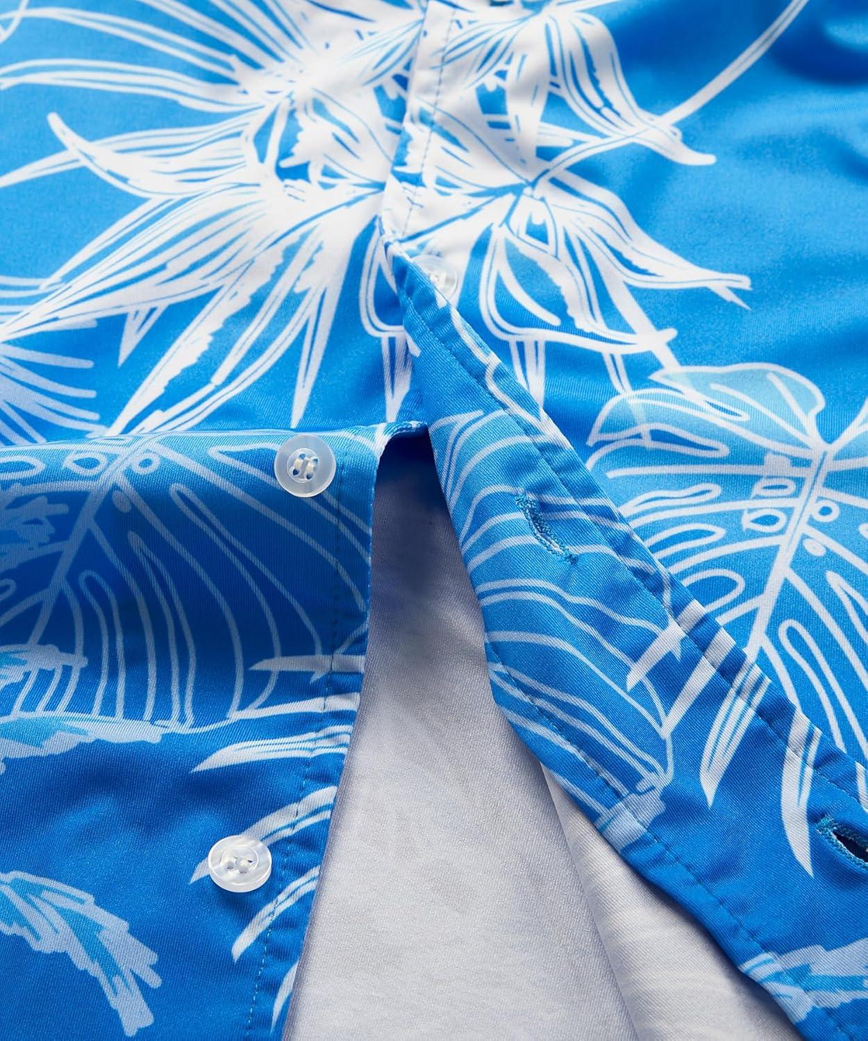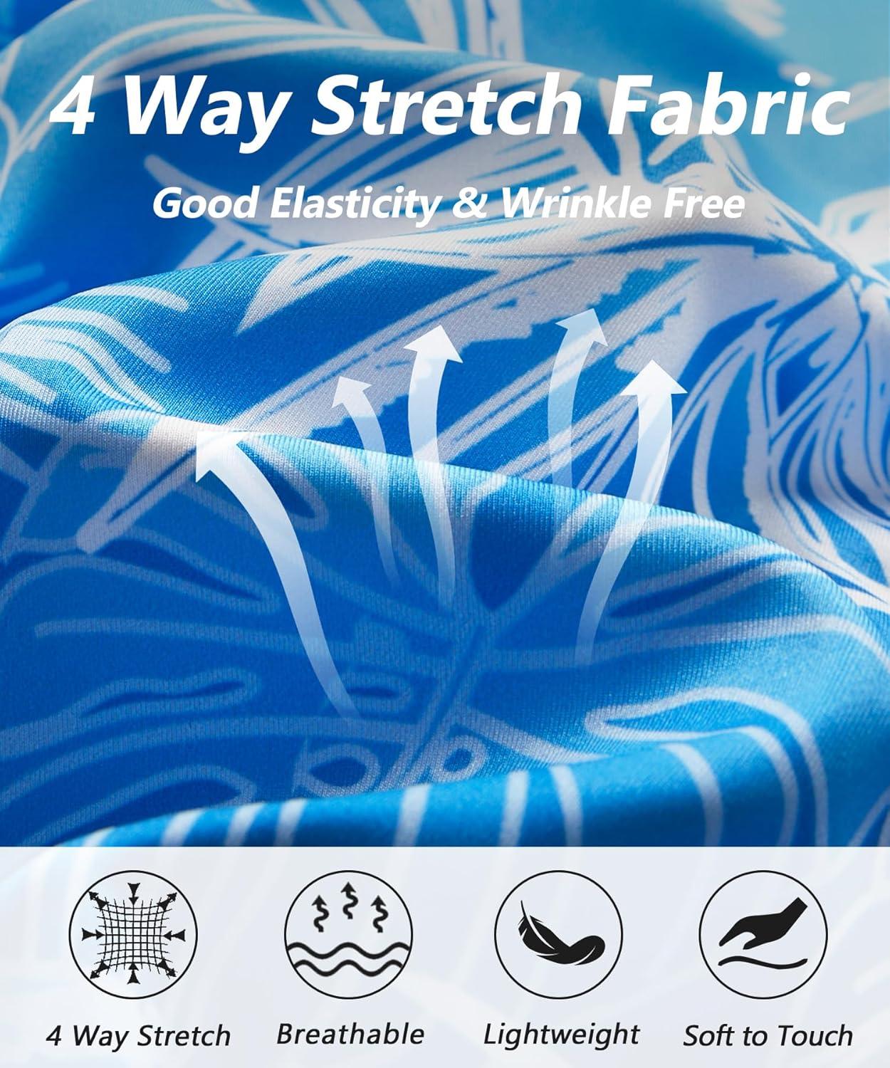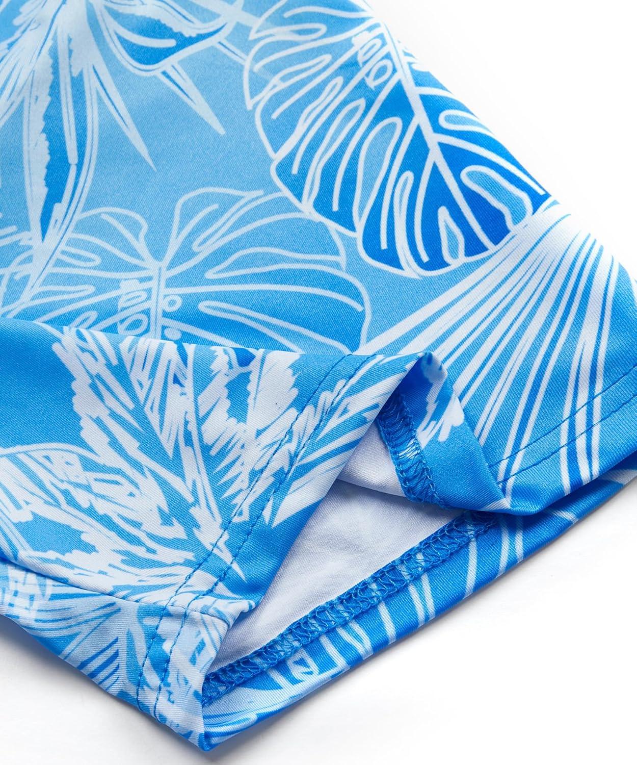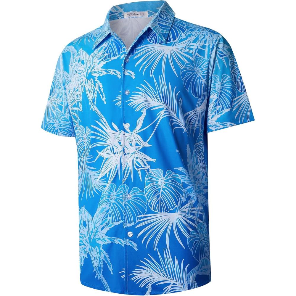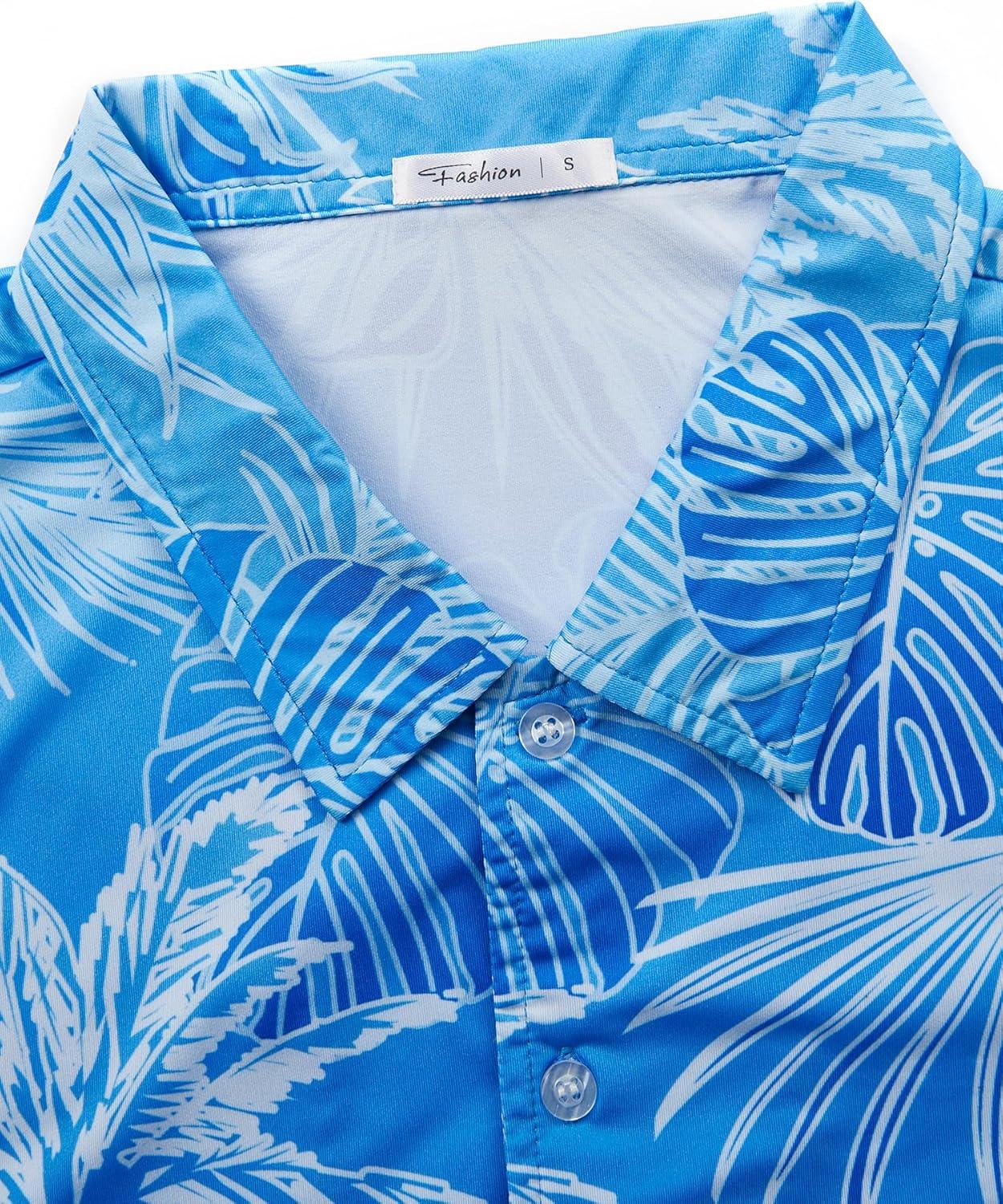 ELETOP Men's Hawaiian Shirt Summer Stretch Short Sleeve Tropical Beach Button Down Casual Shirt(M120 Leaf Blue White)