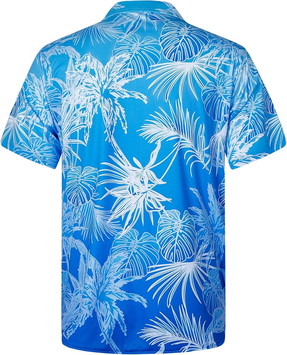 ELETOP Men’s Hawaiian Shirt Summer Stretch Short Sleeve Tropical Beach Button Down Casual Shirt(M120 Leaf Blue White)