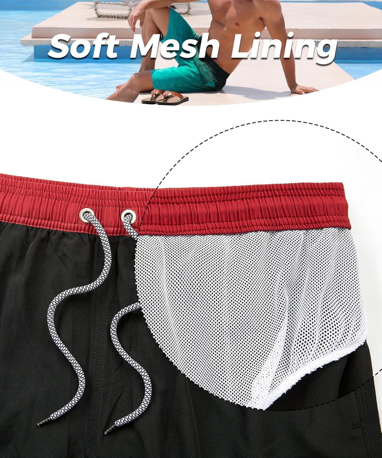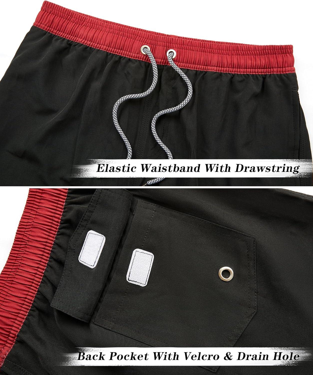 ELETOP Men’s Swim Trunks Quick Dry Bathing Suit Swimming Board Shorts Mesh Lining Beach Swimwear(522 Black)