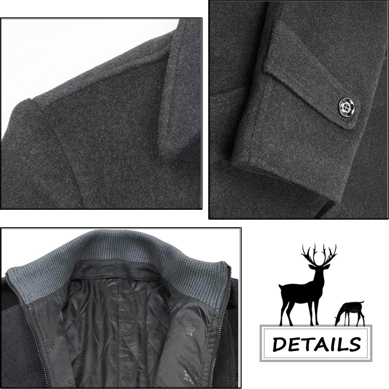 ELETOP Men's Trench Coat Winter Wool Jacket Long Business Overcoat Pea Coat(1109 Dary Grey Short)