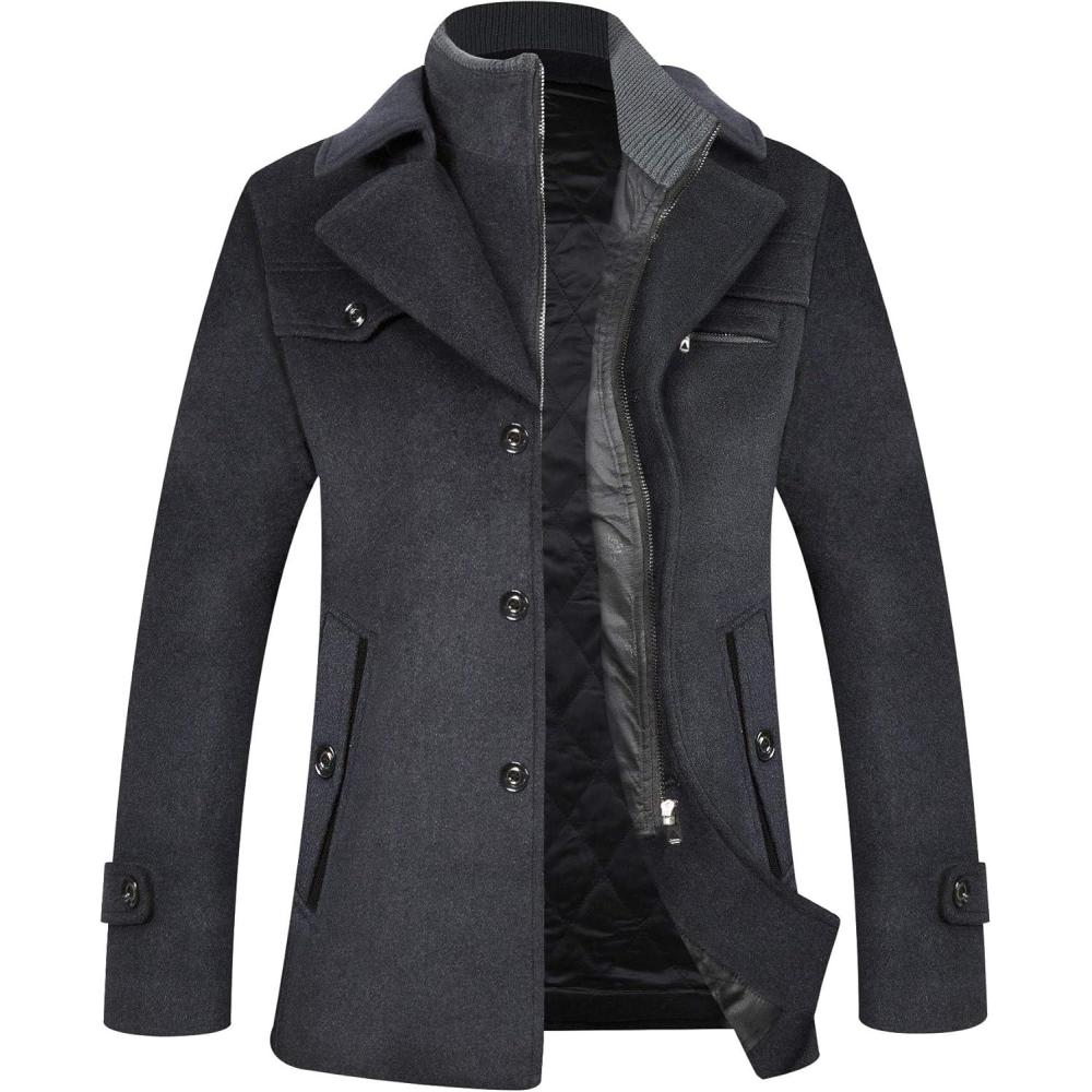 imageELETOP Mens Trench Coat Winter Wool Jacket Long Business Overcoat Pea Coat1109 Dary Grey Short