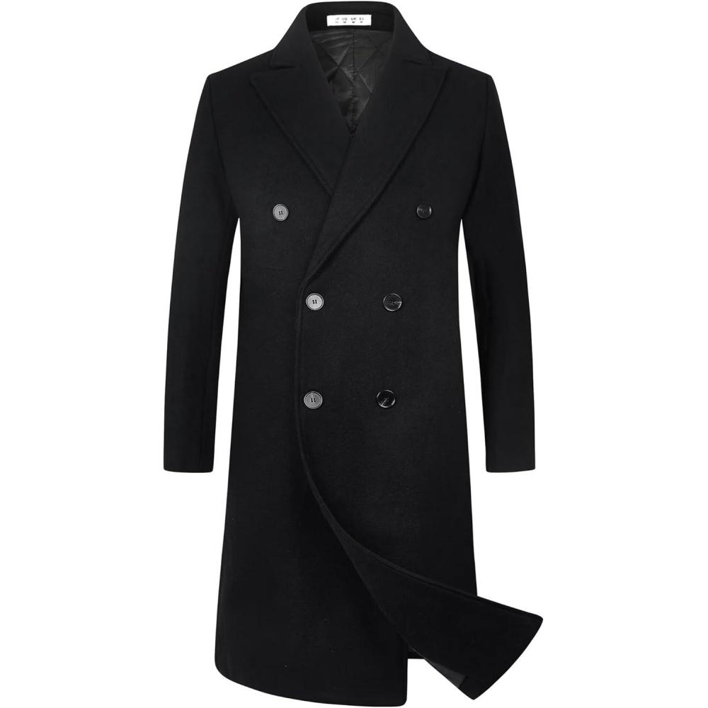 imageELETOP Mens Trench Coat Winter Wool Jacket Long Business Overcoat Pea Coat1802 Black Long